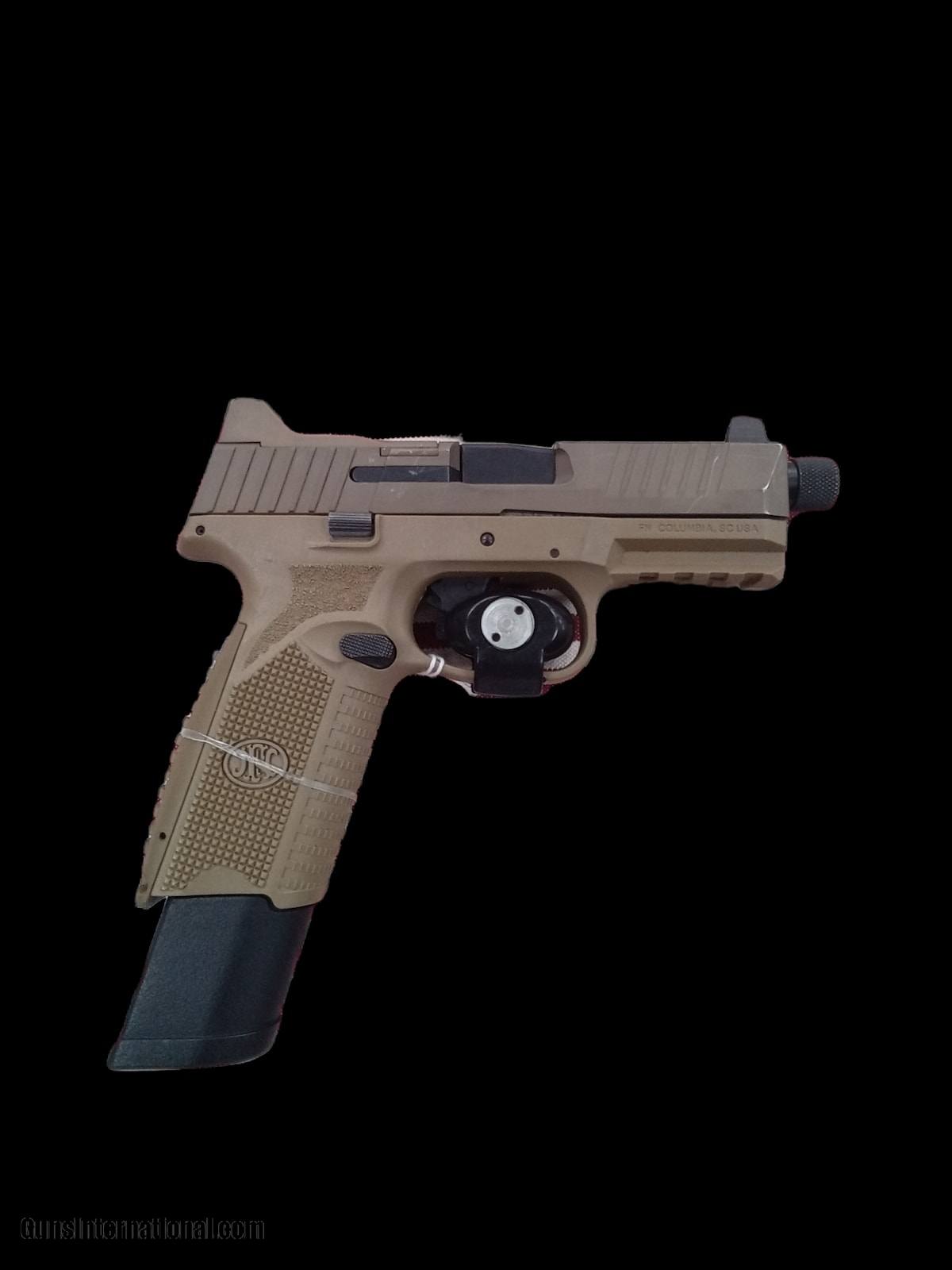 Description: Guns Listing ID: 518962 The FN 509® Tactical, an extension of the FN 509 family, is based on FN’s submission pistol that the U.S. Army tested for its Modular Handgun Trials, but includes the significant improvements to the design that were implemented in the FN 509. The pistol features the company’s U.S Patent No. 10/352,654 Low-Profile Optics Mounting System™ that enables the platform to accept more than ten commercially-available miniature red dot (MRD) optics that co-witness with the suppressor-height night sights and remain adaptable to future optics releases with no requirement of direct milling of the slide. The slide cap, for use when not shooting with an optic, has raised sight wings that protect iron sight alignment if the pistol is dropped or jostled, and provides a textured ramp for racking the slide against a belt loop, pant pocket or boot. An FN-signature 4.5-inch, cold hammer-forged, stainless-steel barrel with target crown, ½” x 28 threads that accept the bulk of 9mm suppressors available and thread cap with integrated O-ring to prevent loosening during use complete the top end. Lastly, the 24-round magazines, nearly identical in length to the pistol’s slide, maximize ammunition capacity without impacting carry convenience. SOLD Manufacturer: FN Model: 509 TACTICAL FDE Caliber Info: 9MM Condition: Used - Non-Certified Barrels: 4.5 BARREL Finish: FDE/BLACK |