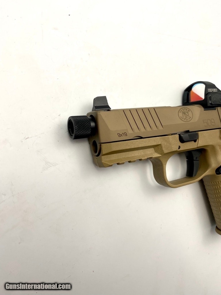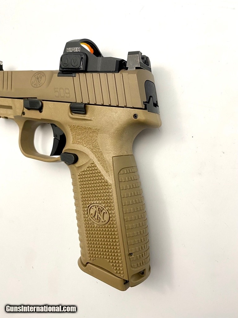 Description: Guns Listing ID: 706602 Pre-Owned FN 509 Tactical in excellent condition. It comes with a Vortex Viper red dot already installed along with the original case, holster and two 17rd and one 24rd magazine. SOLD Manufacturer: FN Model: 509 TACTICAL FDE Caliber Info: 9MM Condition: Used - Non-Certified Barrels: 4 BARREL Finish: FDE |