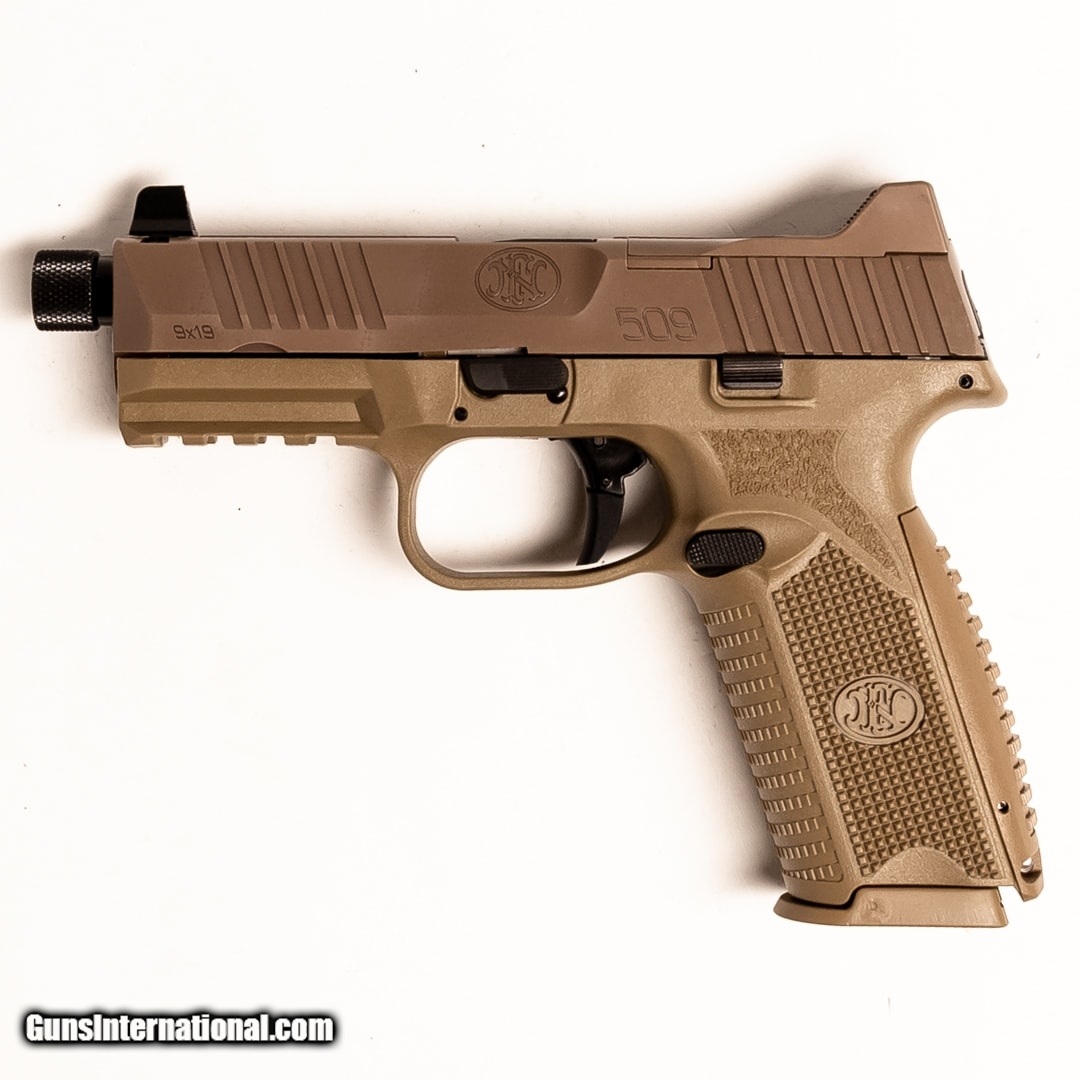 Description: Guns Listing ID: 544622 Made by one of the most dependable firearm companies in the business, the FNH FN 509 Tactical is a rock-solid pistol for self-defense, tactical applications, home-defense, and competition use. FN‚‚s are trusted by some of the best militaries in the world, including a wide variety of firearms in the US Military‚‚s arsenal. Needless to say, if you‚‚re looking for a handgun you can trust from a brand you can trust, the FN 509 Tactical is an outstanding choice. This handgun features two 24-round magazines, one 17-round magazine, and the original case with the manual. SOLD Manufacturer: FN Model: 509 TACTICAL Caliber Info: 9MM LUGER (9X19 PARA) Condition: Used - Certified Barrels: 4.5 BARREL Finish: FDE |