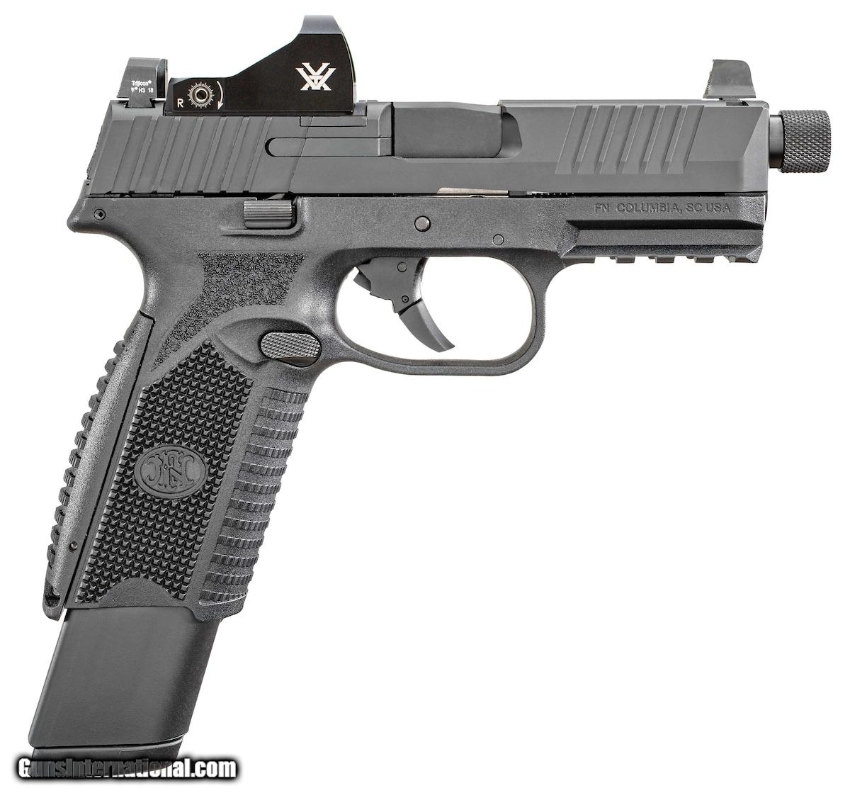 Description: Guns Listing ID: 407867 The FN 509 Tactical, an extension of the FN 509 family, is based on FN‚‚s submission pistol that the U.S. Army tested for its Modular Handgun Trials, but includes the significant improvements to the design that were implemented in the FN 509. The pistol features a patent-pending Low-Profile Optics Mounting System that enables the platform to accept miniature red dot (MRD) optics that co-witness with the suppressor-height night sights. The slide cap has raised sight wings that protect iron sight alignment if the pistol is dropped or jostled, and provides a textured ramp for racking the slide against a belt loop, pant pocket or boot. An FN-signature 4.5-inch, cold hammer-forged, stainless-steel barrel with target crown, 1/2\" x 28 threads that accept the bulk of 9mm suppressors available and thread cap with integrated O-ring to prevent loosening during use complete the top end. The 509 Tactical ships with two interchangeable backstraps and FN logo soft pistol case. This model has a black finish and comes with one 17-round magazine and two 24-round magazines SOLD Manufacturer: FN Model: 509 Tactical Caliber Info: 9MM LUGER (9X19 PARA) Condition: new Barrels: 4.5" barrel Finish: BLACK |