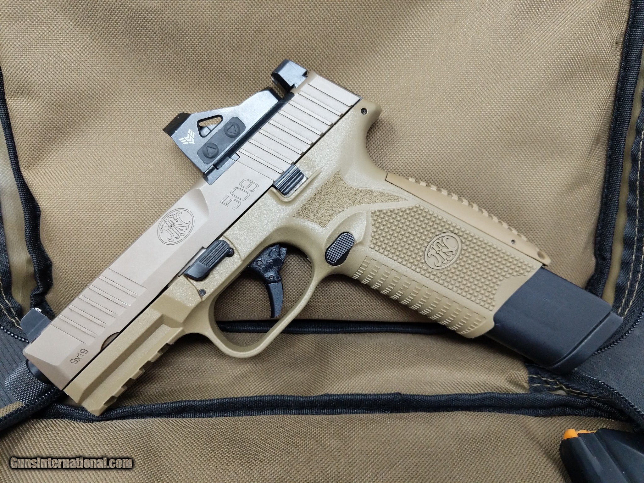 Description: Guns Listing ID: 644803 Great condition FN 509 Tactical! Exceptional firearm good for everyday use, competition, or collection. Includes two 24rd mags, holster, and Swampfox optic. In soft case 1022VZZ SOLD Manufacturer: FN Model: 509 TACTICAL Caliber Info: 9MM LUGER (9X19 PARA) Condition: Used - Non-Certified Barrels: 4.5 BARREL Finish: TAN |