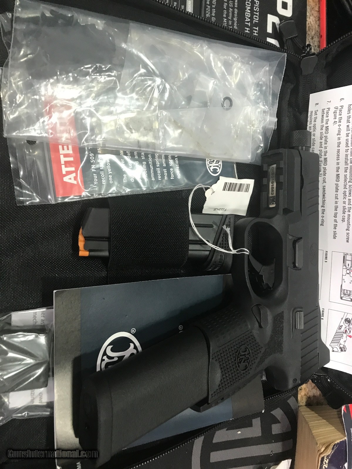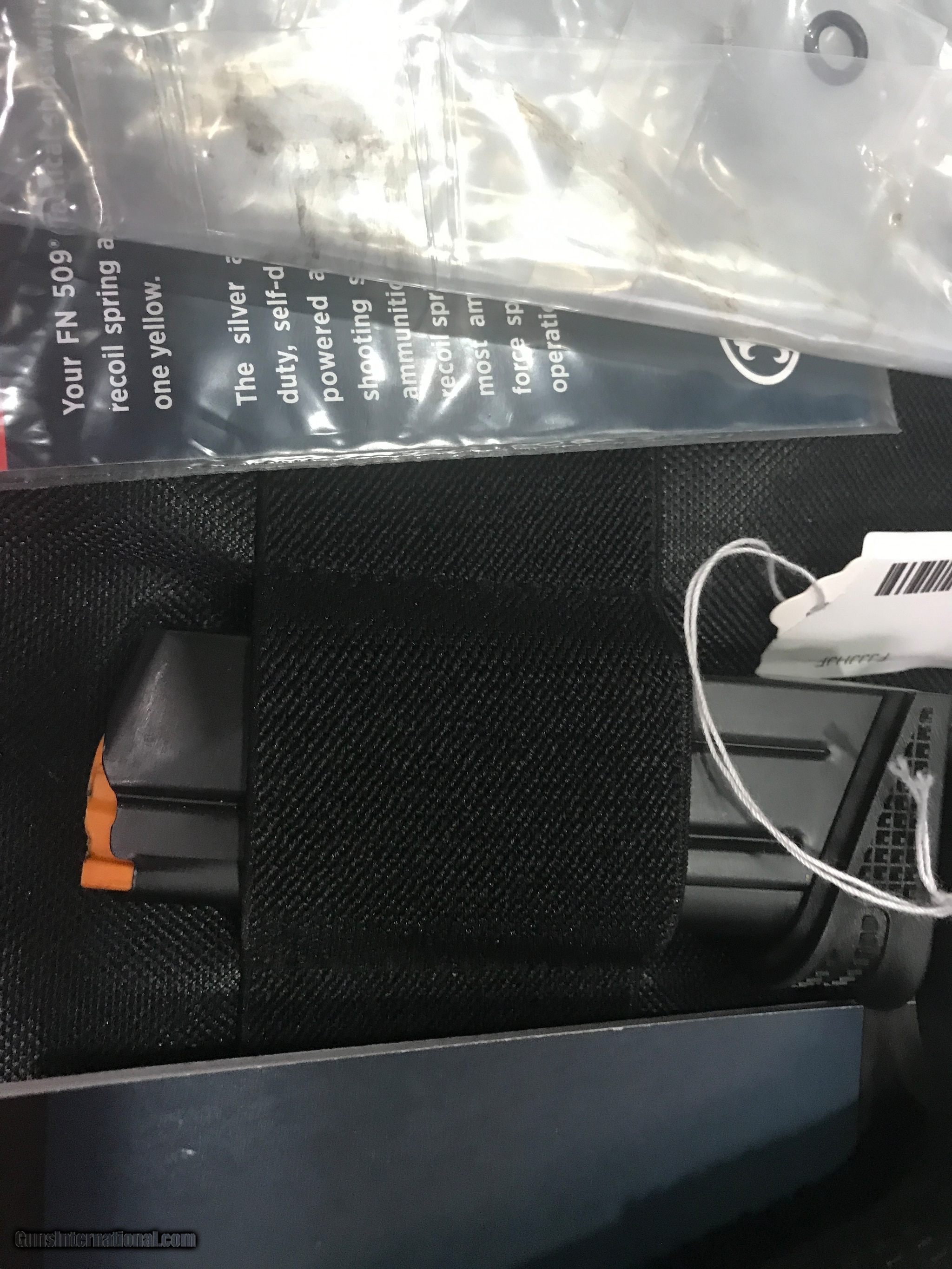 Description: Guns Listing ID: 325148 For sale a FN 509 TAC. Fired once. Has 2 mags one 24rd and one 12rd. Comes will all you see in the pics. SPECS CALIBER: 9mm OPERATION: Double-action MAG CAPACITY: 10 or 17 Rd. WEIGHT: 26.9 oz. OVERALL LENGTH: 7.4" TWIST RATE: 1:10" RH HEIGHT: 5.56" WIDTH: 1.35" TRIGGER PULL: 5.5 - 7.7 lb. SIGHT RADIUS: 5.79" PRIMARY FEATURES Striker-fired autoloader Double-action operation Offered as a non-manual safety model Fixed 3-dot luminescent sights (standard) Fixed 3-dot green tritium night sight available (LE ONLY) SLIDE Easily racked, combat-style sights External extractor; loaded chamber indicator Improved front and rear cocking serrations The FN 509® is built on the proven architecture of the FNS™ Compact, FN made changes internally and externally to meet the rigorous performance standards of the MHS requirements and further developed the platform into the FN 509® with the help from industry experts. Over the course of development, the platform has been tested extensively for reliability, ammunition compatibility and durability – totaling more than one million rounds. SOLD Manufacturer: FN Model: 509 Caliber Info: 9X19 Condition: Used - Non-Certified Barrels: 40 BARREL Finish: BLACK |