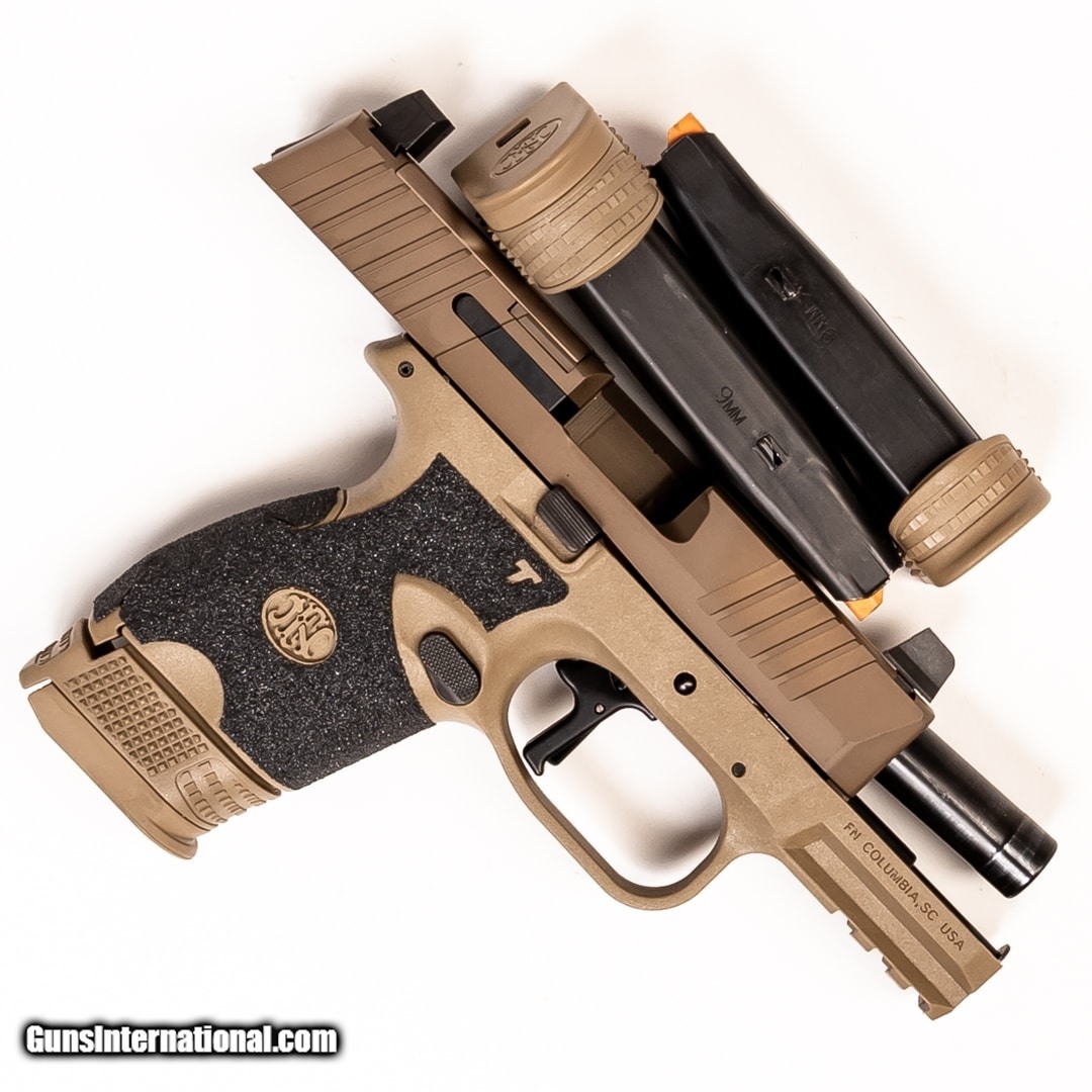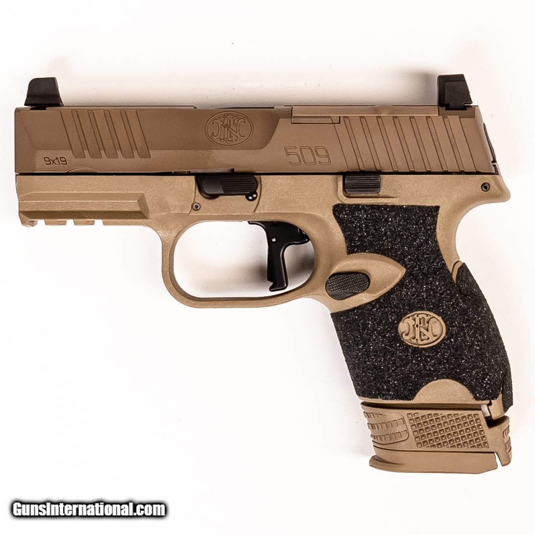 Description: Guns Listing ID: 469202 Rugged and dependable, the FNH FN 509 is a semi-automatic 9mm pistol well equipped for self-defense and tactical applications. This model features the flat black finish. This handgun includes two 15-round magazines, one 12-round magazine, optics plates, and the original case with the manual. SOLD Manufacturer: FN Model: 509 Caliber Info: 9MM LUGER (9X19 PARA) Condition: Used - Certified Barrels: 3.75 BARREL Finish: FDE |