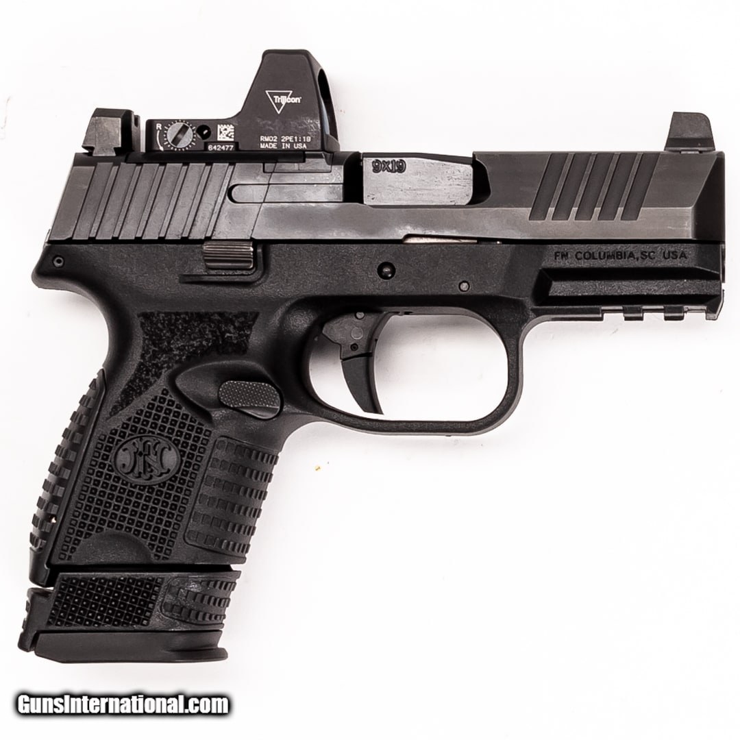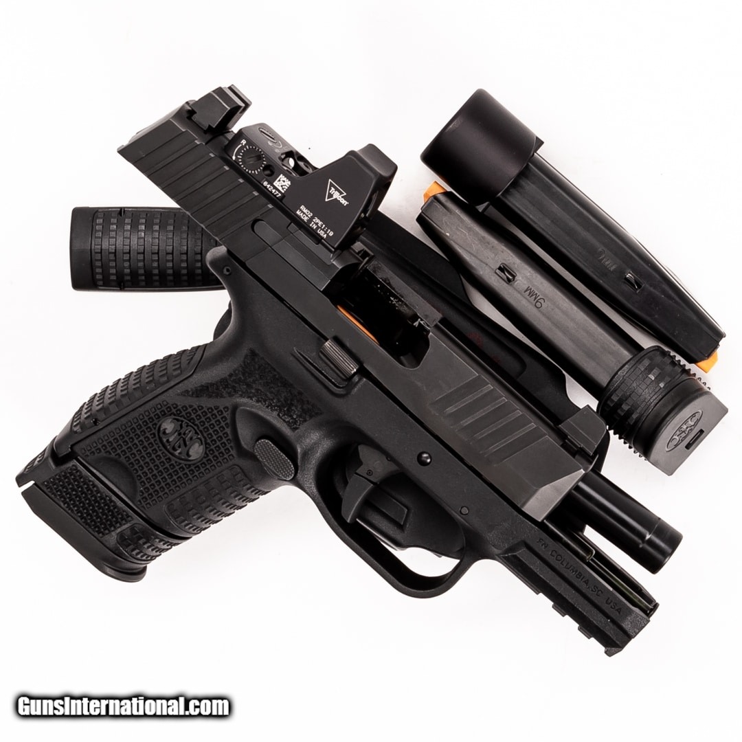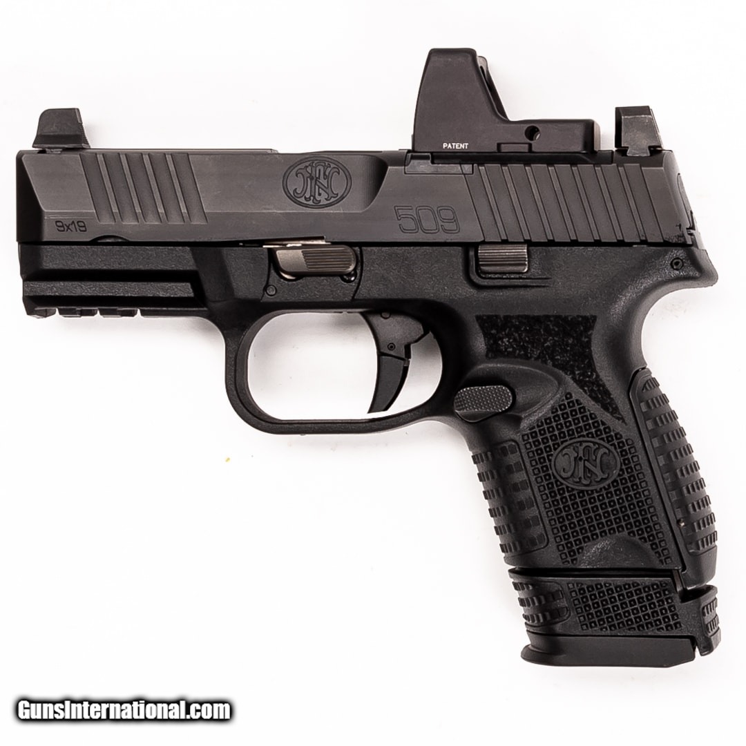 Description: Guns Listing ID: 328760 The FN 509 is a dependable semi-auto originally designed for the U.S. Army. This pistol has a variety of sought after features including an accessory rail, raised sights, a threaded barrel, a cutout for a micro red dot and much more. Whether you‚‚re involved in tactical operations or at the range, the 509 is a trusty sidekick. 2-15 round magazines, 1-12 round magazine (with a Hyve +3 mag extension), a soft case, and backstraps are included. A Trijicom RM02 RMR is also included SOLD Manufacturer: FN Model: 509 Caliber Info: 9MM LUGER (9X19 PARA) Condition: Used - Certified Barrels: 3.7 BARREL Finish: BLACK |