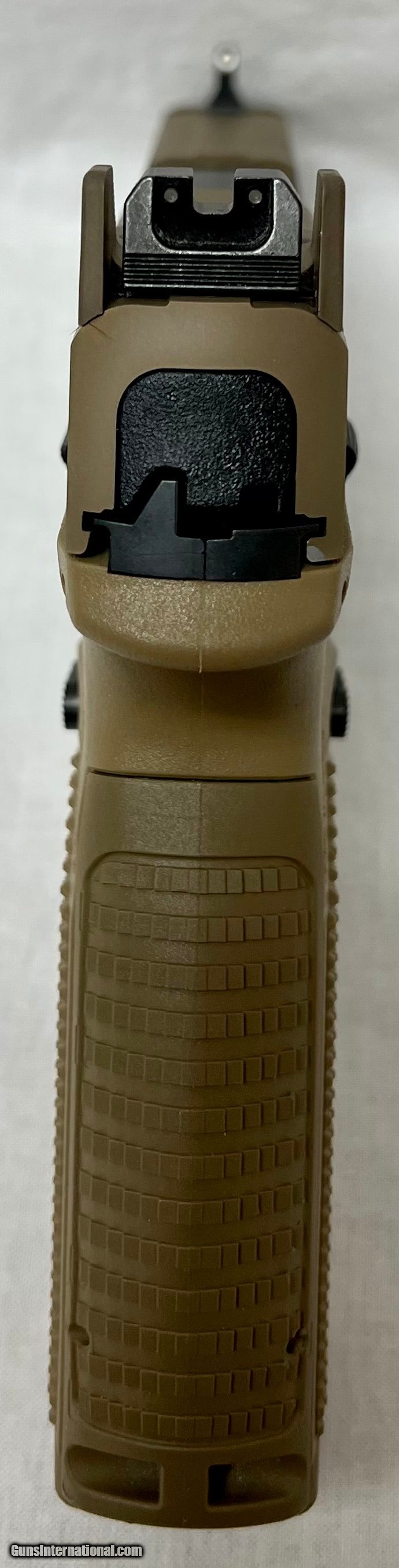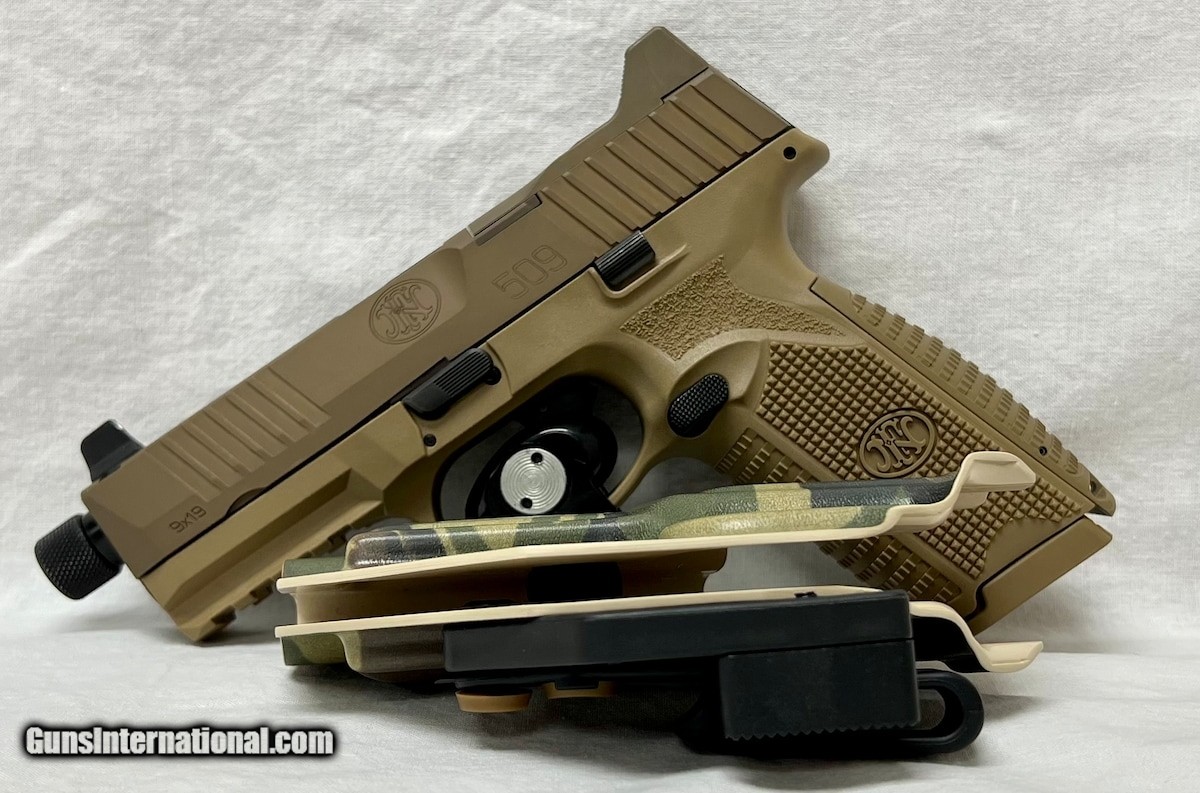 Description: Guns Listing ID: 515138 The FN AMERICA FN-509 Tactical 9mm 4.5in 1x17rd/1x24rd Flat Dark Earth Pistol an extension of the FN 509 family, is based on FN‚‚s submission pistol that the U.S. Army tested for its Modular Handgun Trials, but includes the significant improvements to the design that were implemented in the FN 509. It has one mag and camo holster. 062081 SOLD Manufacturer: FN Model: 509 Caliber Info: 9 MM Condition: Used - Non-Certified Barrels: 4.5 BARREL Finish: FLAT DARK EARTH |