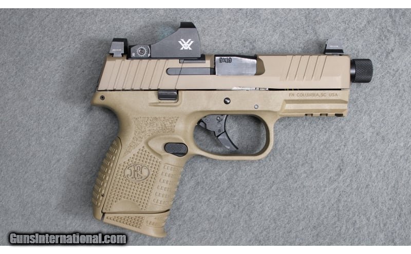 Description: FN 509C semiautomatic pistol chambered in 9mm Luger. Comes in a factory softcase with a mounted Vortex Viper Red Dot along with 24-, 17-, and 12-round magazines. 9mm Luger SOLD Barrels: 4.25 inch Threaded Sights: Mounted Red Dot and Suppressor Height Night Sights Item Location: Fort Worth, TX |
