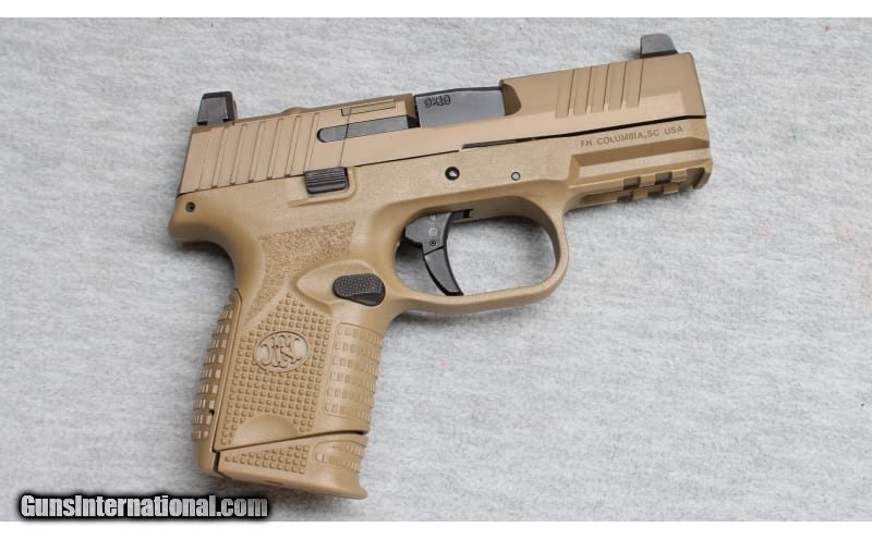 Description: Excellent, light wear and handling marks, comes with four mags and factory box. 9mm Semi auto pistol by FN - 3 1/2" barrel, factory dark earth finish, supressor height sights & optics ready for red dot mounting, and factory textured grip surfaces. A great choice for concealed carry or for home defense. 9mm Luger SOLD Chambers: Semi auto Metal Condition: Excellent Bore Condition: Bright Barrels: 3 1/2 Triggers: Striker fired Fore End: Rail for accessory mounting Butt Pad: Polymer frame with integral grip Sights: Factory iron sights Item Location: La Vista, NE |
