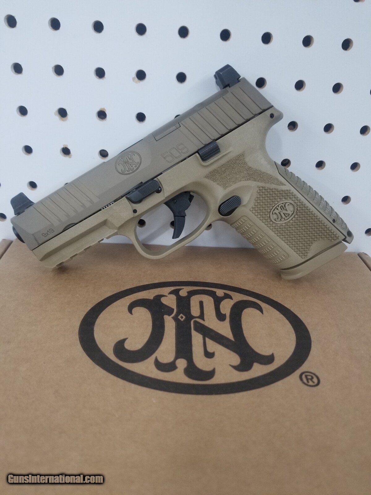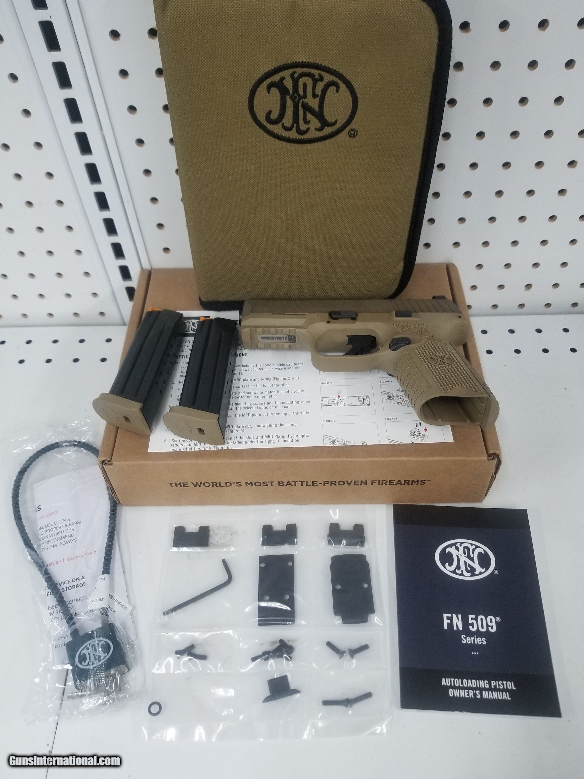 Description: Guns Listing ID: 544414 FN 509 Midsize, Caliber 9mm, Double-action, Two 15 Round Magazines, 4\" Barrel, Manual Booklet, Gun Lock With Key, Near Mint Condition, In Original Box. INV#1213430 SOLD Manufacturer: FN Model: FN 509N Caliber Info: 9MM LUGER (9X19 PARA) Condition: Used - Non-Certified Barrels: 4" barrel Finish: FDE |