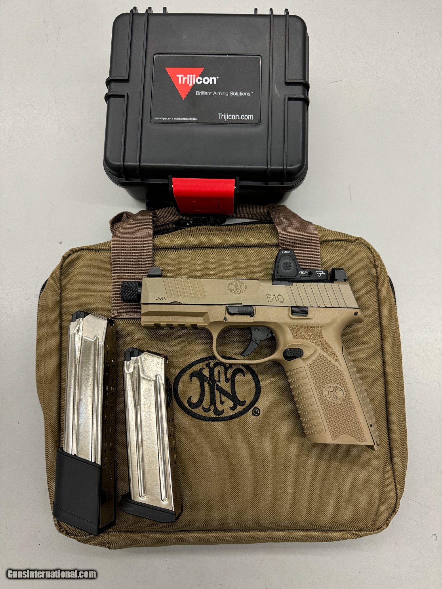 Description: Guns Listing ID: 1339163 This FN 510 comes with 2 magazines, original FN soft case, and Trijicon RMR with case. SOLD Manufacturer: FN Model: 510 TACTICAL Caliber Info: 10MM Condition: Used - Non-Certified Barrels: 4.71 BARREL Finish: FDE |