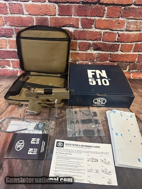 Description: Guns Listing ID: 548927 This gun is in fantastic condition and appears to of been fired very little. There is a very small black mark on top of slide (see pic) This gun comes with the original bag, box, paperwork, mounting hardware and 2 magazines. SOLD Manufacturer: FN Model: 510 TACTICAL Caliber Info: 10MM Condition: Used - Non-Certified Barrels: 4.71 BARREL Action: STRIKER FIRED Finish: FDE Weight: 2.0 LBS. |