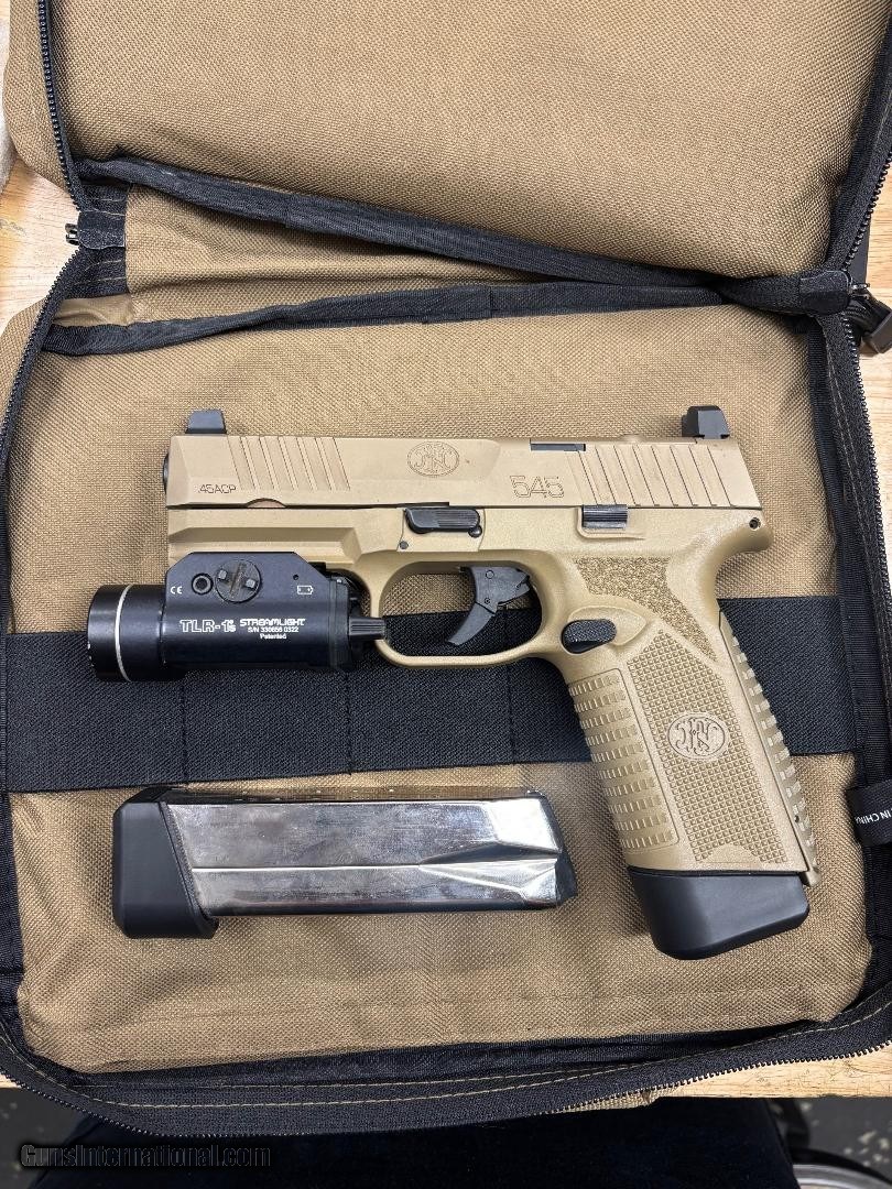 Description: Guns Listing ID: 606835 FN 545 MRD COMES WITH BAG, 2 MAGS AND A STREAMLIGHT TLR-1S Manufacturer: FN Model: 545 MRD Caliber Info: .45 ACP Condition: Used - Non-Certified Barrels: 4.1" BARREL Action: STRIKER FIRED Finish: FDE Weight: 1.875 LBS. Price: $649.99 Contact Seller |