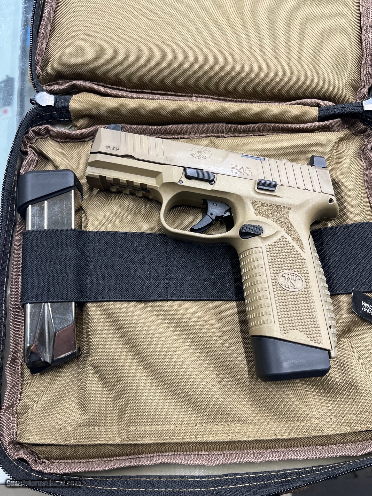 Description: Guns Listing ID: 501661 This limited edition FN 545 MRD is a full-size .45 ACP powerhouse, featuring a striking OD Green frame and black slide. It comes optics-ready from the factory, compatible with most popular red dots, and includes suppressor-height night sights for co-witnessing. With a 15-round magazine, aggressive slide serrations, and enhanced ergonomics, the 545 MRD delivers modern performance, stopping power, and FN’s legendary reliability in a bold, collectible package. SOLD Manufacturer: FN Model: 545 MRD Caliber Info: .45 ACP Condition: Used - Non-Certified Barrels: 4.1 BARREL Action: STRIKER FIRED Finish: FDE Weight: 1.875 LBS. |