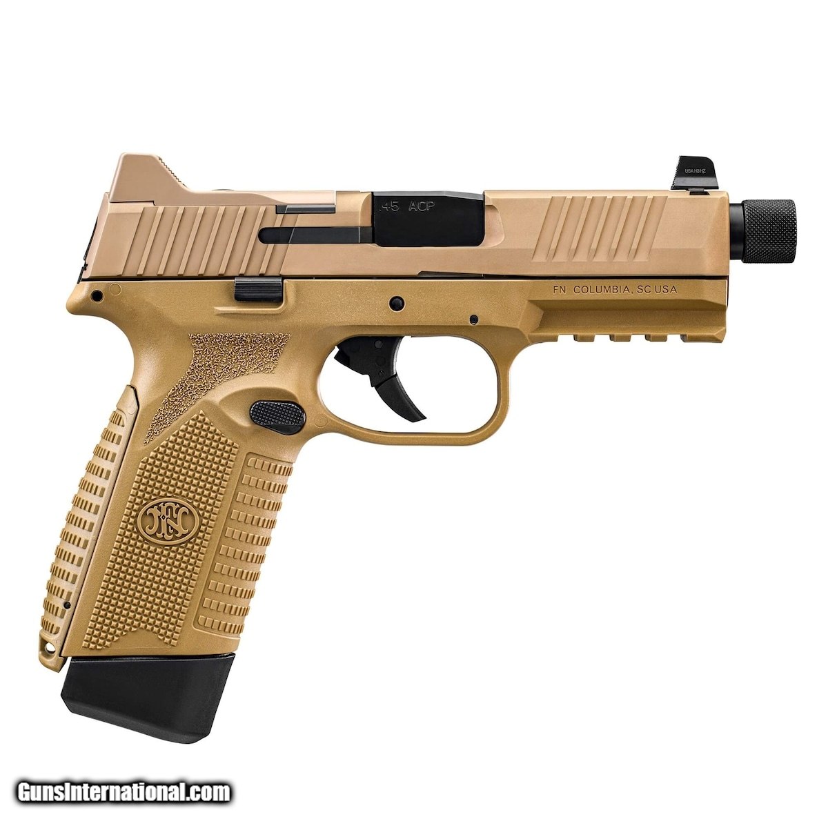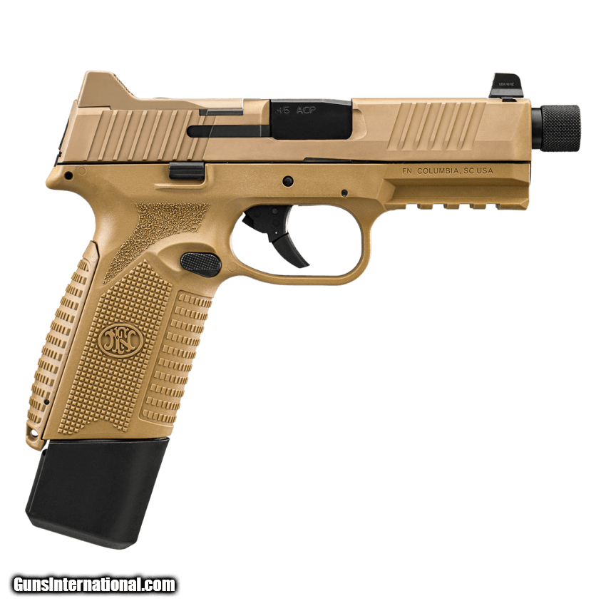 Description: Guns Listing ID: 707043 18+1 rounds leave nothing to chance, setting a new standard capacity in .45 ACP. Suppressor-ready, with a threaded barrel and co-witness tritium night sights, this industry-first pistol is upgraded with the proven ergonomics of the FN 509® Tactical. Shooters can mount their favorite red dot sight in minutes, adding pinpoint control on command. Complete with the high endurance striker and crisp, ˜6-lb. trigger pull, the FN 545 Tactical is what other big bore pistols want to be when they grow up. INCLUDES: 18-RD AND 15-RD MAGAZINES PREMIUM ZIPPERED CASE TWO FRAME BACKSTRAPS FOUR MRD MOUNTING PLATES SOLD Manufacturer: FN Model: 545 TACTICAL Caliber Info: .45 ACP Condition: new Barrels: 4.71 BARREL Finish: FDE |