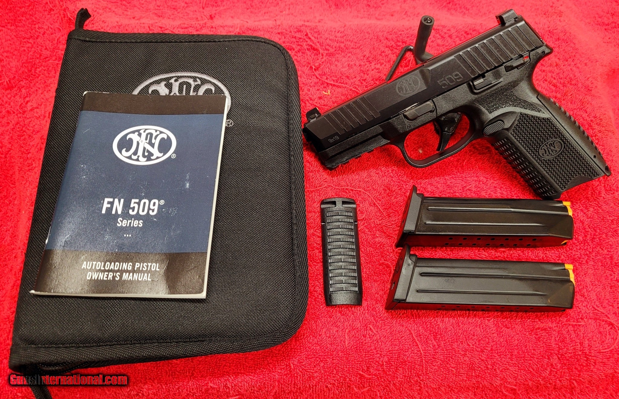 Description: Guns Listing ID: 466862 Some slight wear from being racked and a little range use on top of barrel. Has 2 17-round magazines and soft case. SOLD Manufacturer: FN America Model: 509 COMPACT Caliber Info: 9X19 Condition: Used - Non-Certified Barrels: 3.75 BARREL Finish: BLACK |