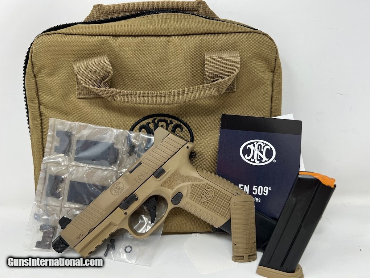 Description: Guns Listing ID: 631003 Up for sale today is this FN 509 tactical 9mm semi auto pistol. This pistol is in excellent condition and will include 2 mags, paper, extra grips, and extra mounting plates. Please refer to photos for additional details. SOLD Manufacturer: FN America Model: 509 TACTICAL - 66-100373 fde fn509t 17/24 round optics ready Caliber Info: 9 MM Condition: Used - Non-Certified Barrels: 4 BARREL Finish: FDE |
