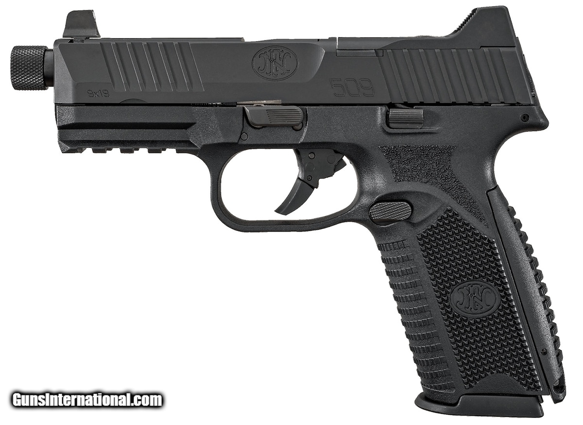 Description: Guns Listing ID: 50286 The FN 509 Tactical an extension of the FN 509 family is based on FNs submission pistol that the U.S. Army tested for its Modular Handgun Trials but includes the significant improvements to the design that were implemented in the FN 509. The pistol features a patent-pending Low-Profile Optics Mounting System that enables the platform to accept miniature red dot (MRD) optics that co-witness with the suppressor-height night sights. The slide cap has raised sight wings that protect iron sight alignment if the pistol is dropped or jostled and provides a textured ramp for racking the slide against a belt loop pant pocket or boot. An FN-signature 4.5-inch cold hammer-forged stainless-steel barrel with target crown 12 x 28 threads that accept the bulk of 9mm suppressors available and thread cap with integrated O-ring to prevent loosening during use complete the top end. The 509 Tactical ships with two interchangeable backstraps and FN logo soft pistol case. This model has a black finish and comes with one 17-round magazine and two 24-round magazines. SOLD Manufacturer: FN Model: 509 TACTICAL Caliber Info: 9MM LUGER (9X19 PARA) Condition: new Barrels: 4.5" barrel |