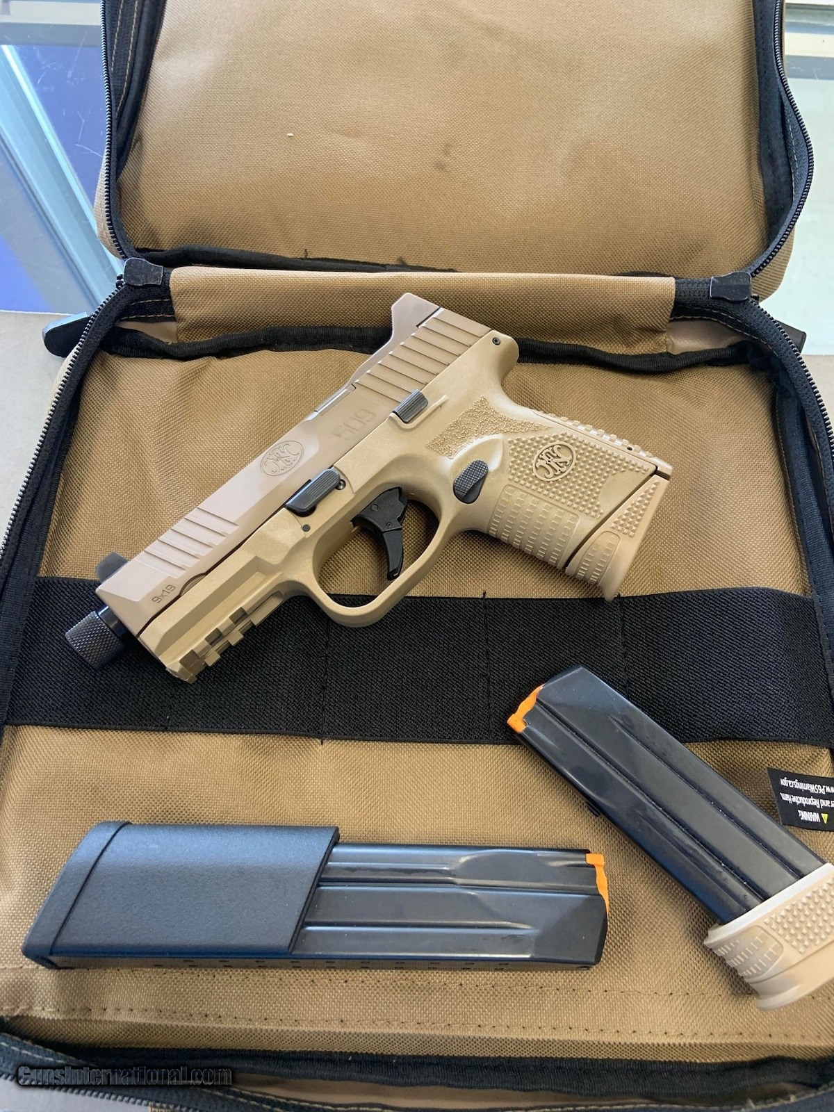 Description: Guns Listing ID: 501123 Will ship with everything that you see in the photos. The tan soft case, the 2 regular magazines and the extended one as well. It does have the spare recoil spring still in the packaging. Has the raised night sights and threaded barrel. Overall condition is perfect, nothing that would impede the function of the pistol. Great pistol for any FN lover that doesn‚‚t mind a very gently used SOLD Manufacturer: FN Model: 509C TACTICAL Caliber Info: 9MM LUGER (9X19 PARA) Condition: Used - Non-Certified Barrels: 4.32 BARREL Finish: FDE |