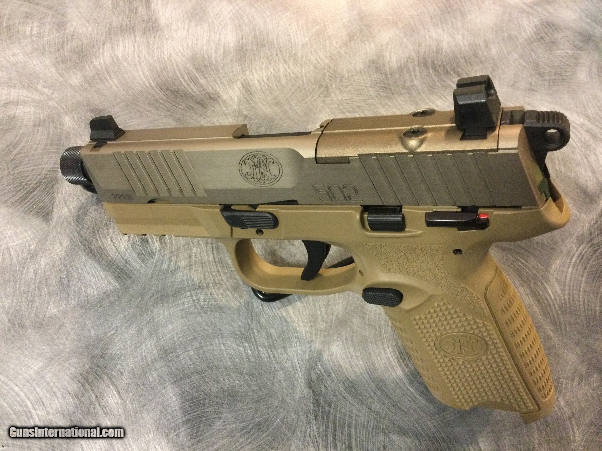 Description: Guns Listing ID: 352722 The FN 502 Tactical isn't just the first .22 LR from FN, its the industry's first slide-mounted, optics-ready rimfire handgun. Designed for maximum fun, FNs hammer-fired .22 LR delivers more accuracy and versatility than any other rimfire. Mounting a favorite red dot optic and cycling a wide range of .22 LR ammo makes a low-cost range day a high-end experience. Inspired by FN's patented Low-Profile Optics Mounting System, the FN 502 Tactical offers unmatched sighting options and co-witness front and rear sights align perfectly with your dot. The superior ergonomics, proven balance and ambidextrous controls, all a nod to the FN 502's bigger brother, the FN 509, make it perfect for high round count training sessions. Like a robust target-style rimfire pistol, the design of the FN 502 Tactical delivers faster, more accurate shots on target from a modern, optics-ready tactical pistol. SOLD Manufacturer: FN America Model: FN 502 TACTICAL Caliber Info: .22 LR Condition: new Barrels: 4.6" barrel Finish: FLAT DARK EARTH |