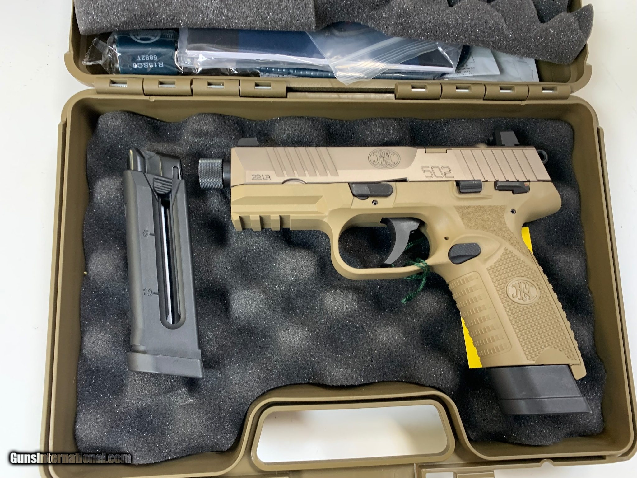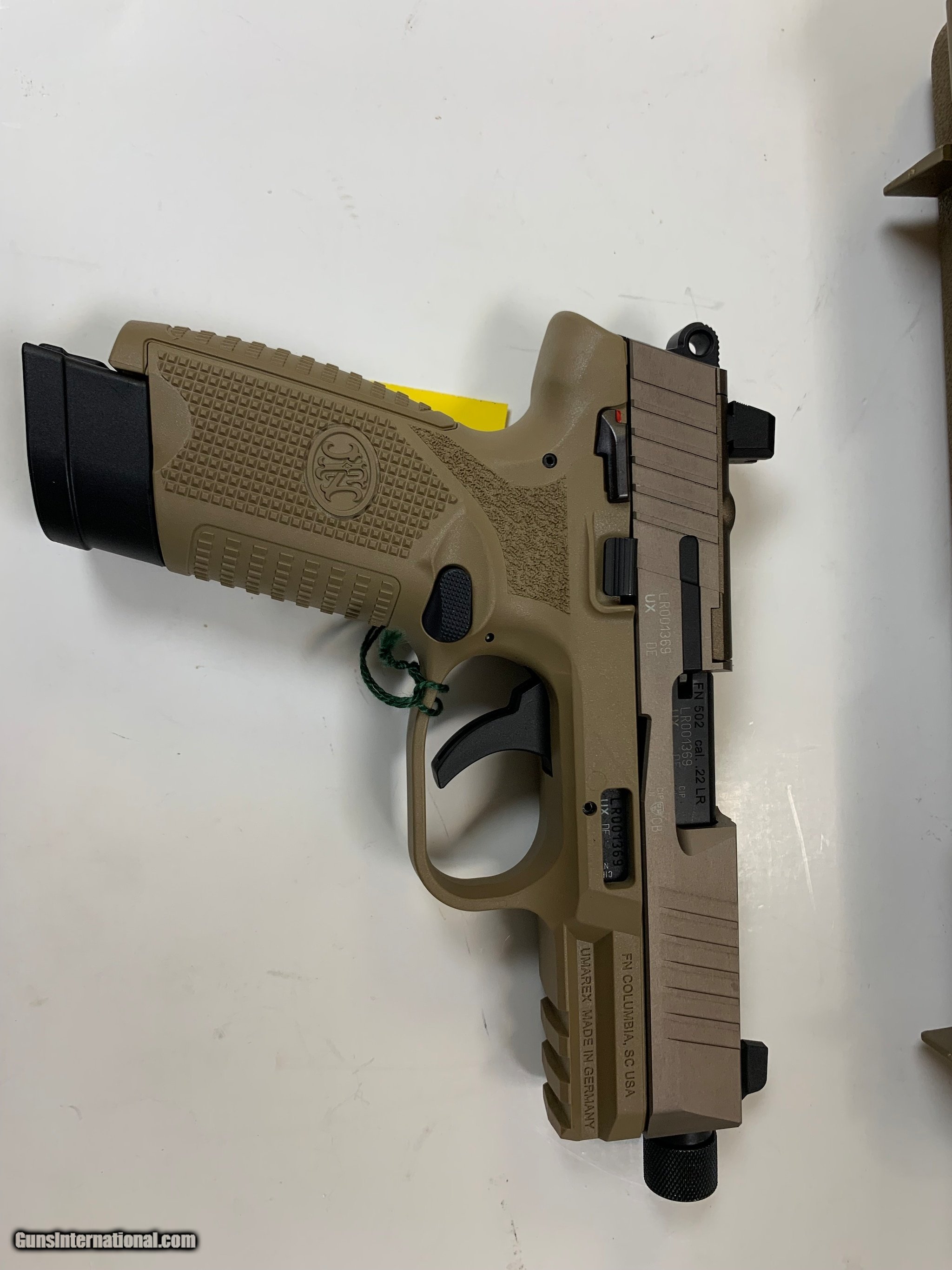 Description: Guns Listing ID: 673710 Hey are looking for a good .22LR Pistol? If so we have this one that is in good condition and will make good handgun to own! So don‚‚t let this one get away from you today! Have any questions look at the pictures and be sure ask any you have on it SOLD Manufacturer: FN America Model: FN 502 TACTICAL Caliber Info: .22 LR Condition: Used - Non-Certified Barrels: 4.6" barrel Finish: FLAT DARK EARTH |