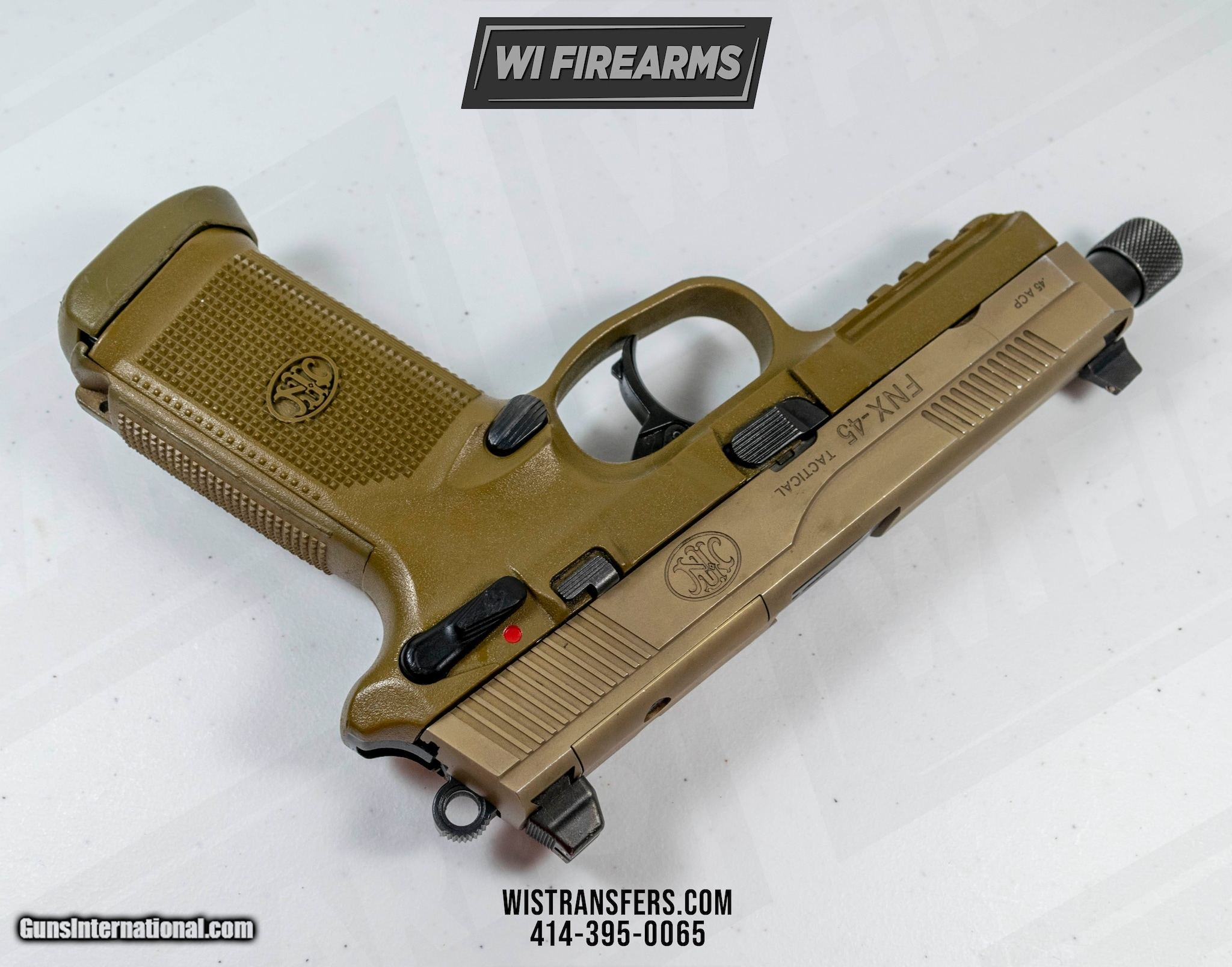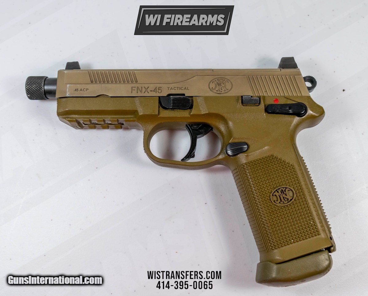 Description: Guns Listing ID: 570960 Threaded Barrel, Polymer Frame, Flat Dark Earth Finish, Suppressor Height Night Sights, 3-15RD Magazines, Fired Case, Manual Safety, Optics Ready SOLD Manufacturer: FN America Model: FNX-45 TACTICAL Caliber Info: .45 ACP Condition: Used - Non-Certified Barrels: 5.3" barrel |