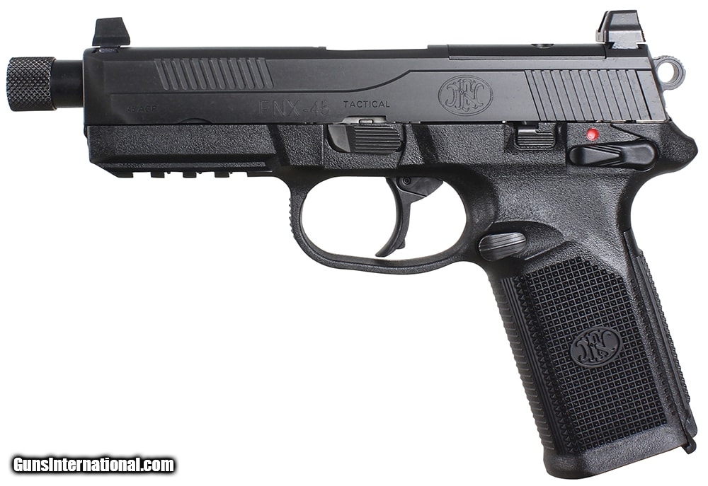 Description: Guns Listing ID: 1229 Developed for the U.S. Joint Combat Pistol Program, this FNH FNX-45 Tactical is a 100% American-made semi-auto handgun and improvement on the FNP-45 Tactical. With unmatched performance, it is chambered in 45 ACP and offers fully ambidextrous controls. The polymer frame utilizes a low-bore axis, which reduces recoil, improves control, and offers natural point-ability, while the stainless steel barrel has a threaded muzzle. An integral rail makes for easy mounting of accessories. SOLD Manufacturer: FN America Model: FNX-45 TACTICAL Caliber Info: .45 ACP Condition: new Barrels: 5.3" barrel |