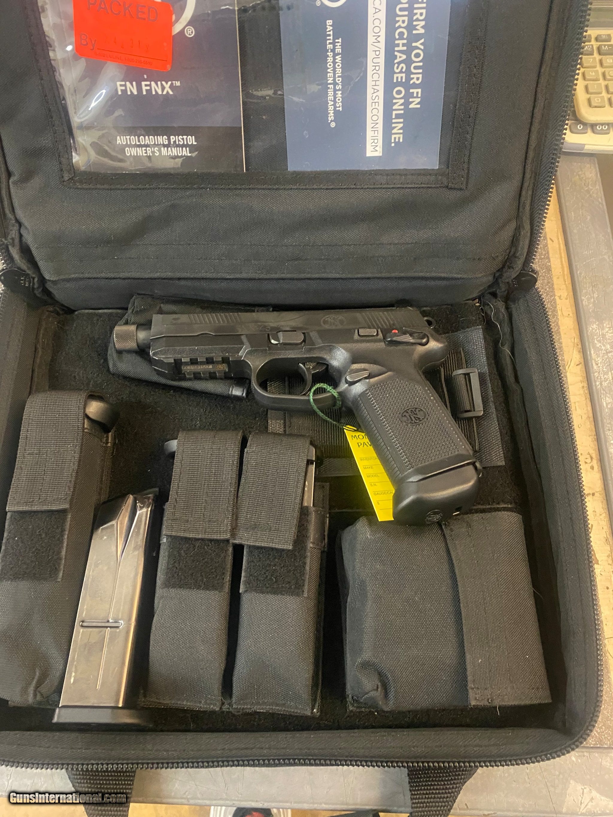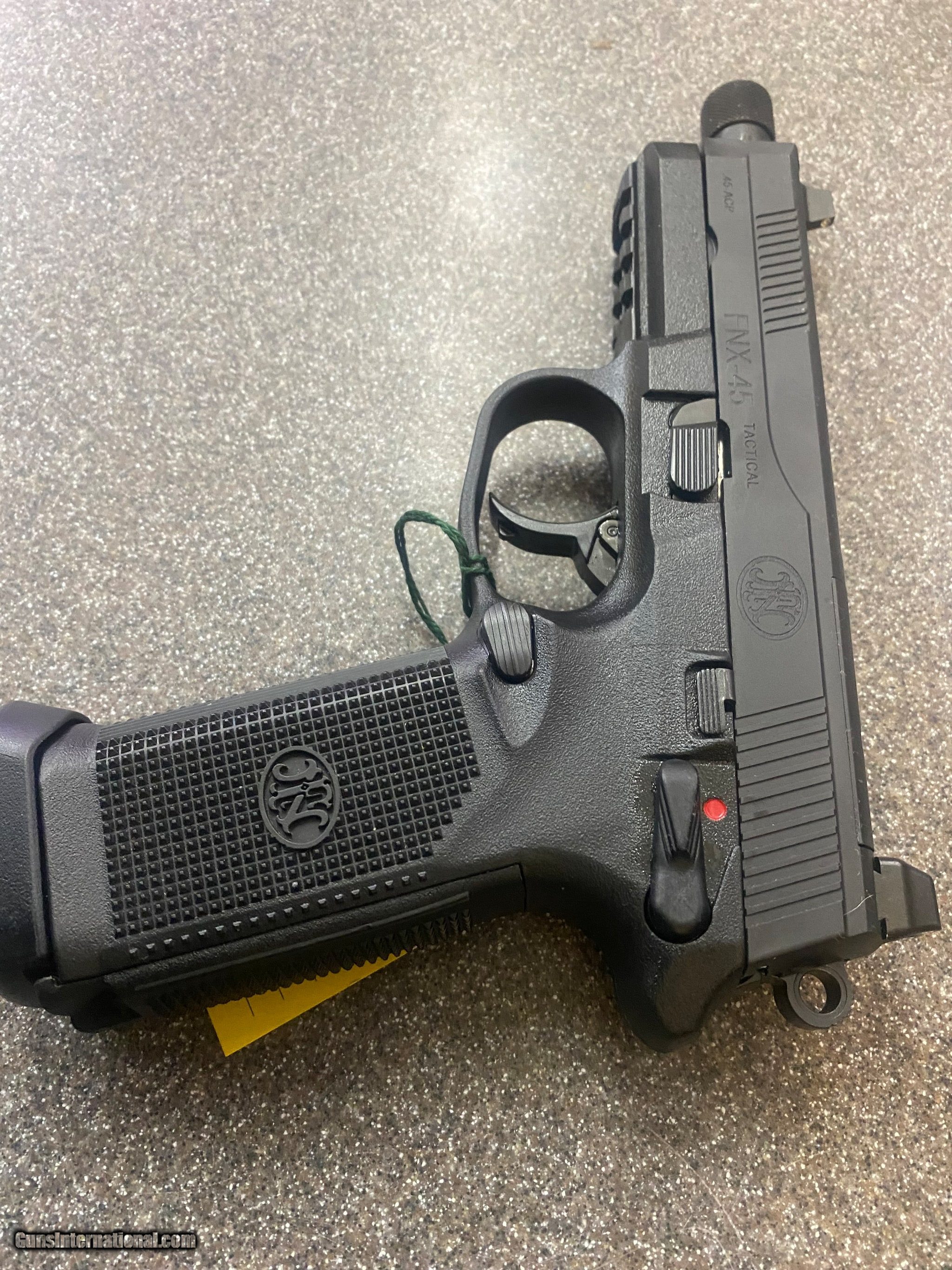Description: Guns Listing ID: 751153 COMES WITH FACTORY SOFT CASE , 2 15 ROUND MAGS, 3 10 ROUND MAGS SOLD Manufacturer: FN Model: FNX-45 TACTICAL Caliber Info: .45 ACP Condition: Used - Non-Certified Barrels: 5.3 BARREL |
