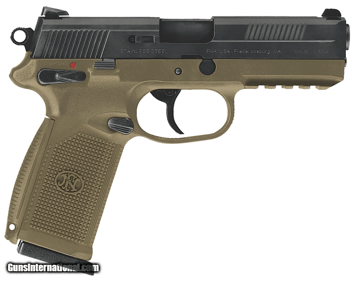 Description: Guns Listing ID: 50309 The FNX is a polymer framed centerfire hammer fired semi-automatic pistol. Available in several variants all FNX pistols feature an ambidextrous safety lever slide stop release lever and magazine release button. They additionally include a slide with loaded chamber indicator fixed three dot sights and Picatinny rail. Newer models frames come with four interchangeable backstraps instead of two. The FNX may be fired in either single or double action and its safety action is based on the M1911s for cocked and locked carry. Details Caliber .45 ACP - Operation Double-actionSingle-action - Magazine 10 or 15 rds. - Weight 33.2 oz. (empty) - Barrel Length 4.5 - Overall Length 7.4 - Sights Fixed 3-dot SOLD Manufacturer: FN America Model: FNX-45 Caliber Info: 45 ACP Condition: new Barrels: 4.5 BARREL |