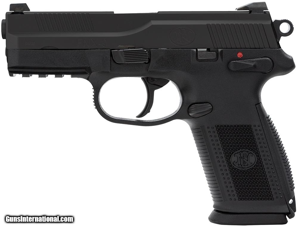 Description: Guns Listing ID: 1004 The FNX is a polymer framed centerfire hammer fired semi-automatic pistol. Available in several variants all FNX pistols feature an ambidextrous safety lever slide stop release lever and magazine release button. They additionally include a slide with loaded chamber indicator fixed three dot sights and Picatinny rail. Newer models frames come with four interchangeable backstraps instead of two. The FNX may be fired in either single or double action and its safety action is based on the M1911s for cocked and locked carry. Details Caliber 9mm - Operation Double-actionSingle-action - Sights Fixed 3-dot - Magazine 17 rds. - Weight 21.9 oz. (empty) - Barrel Length 4.0 (includes bore and chamber) - Overall Length 7.4 BLACK FINISH SOLD Manufacturer: FN Model: FNX-9 Caliber Info: 9MM LUGER (9X19 PARA) Condition: new Barrels: 4 BARREL |