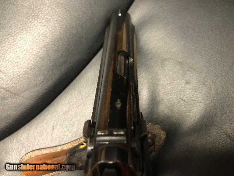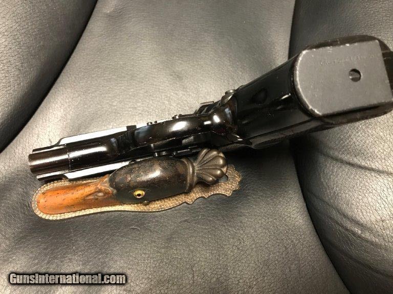 Description: FN, mdl. BDA, made for Beretta, 380 semi auto, made between 1969-1970, alloy frame,90% overall condition, double stack magazine, ambidextrous safety, 3 3/4" barrel, some scratches of grips and frame, serial # 01673, 2 magazines - 1 is blued made in Italy the other is stainless made in Italy 13 rds. For further information call John at 941-748-7318. SOLD |