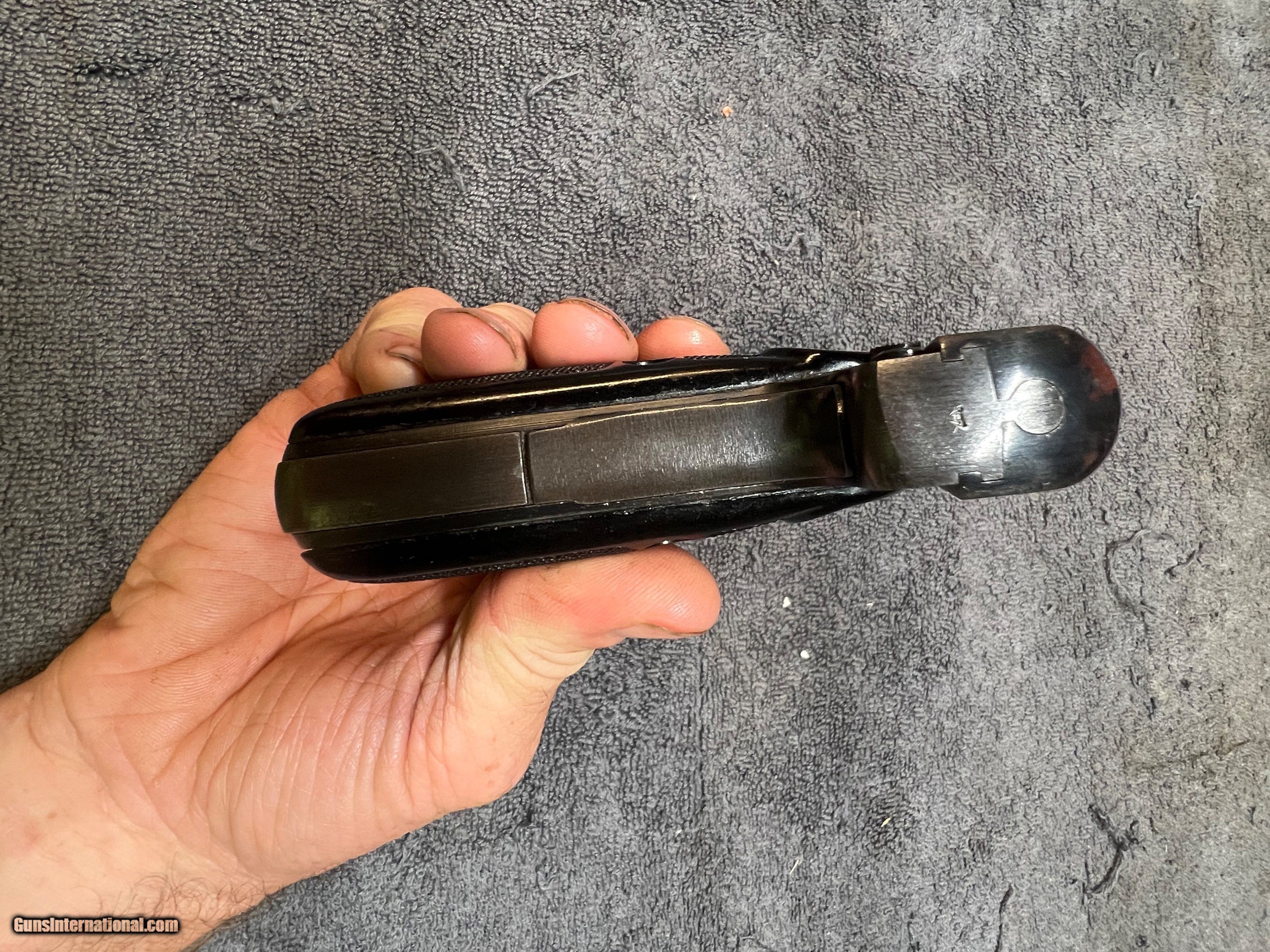 Description: FN Belgium browning model 1922 semi auto pistol German waffenampt 7.65 / 32acp very good condition for its age, only a few minor marks and very little bluing wear. Serial # 88208 matching on all parts, no serial on mag gun functions and fires as it should, clean and shiny bore good rifling feel free to ask any questions 525 shipped Thanks SOLD Curio/Relic: Yes Handgun Caliber: .32 ACP (7.65x17mm Browning SR) Manufacturer: FN Model: 1922 Serial Number: 88208 Condition: Very good Metal Condition: Very good Wood Condition: - Bore Condition: Clean shiny |