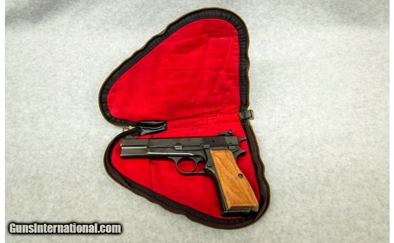 Description: A gorgeous FN Browning Hi-Power, chambered in 9 mm, with a 10 round magazine. This particular Browning was manufactured in Belgium in 1983 by Fabrique Nationale Herstal and is in excellent condition. The bluing is almost untouched, and the wood grips show little if any wear. 9mm Luger SOLD Chambers: 9 mm Metal Condition: Excellent Wood Condition: Excellent Bore Condition: Excellent Barrels: 4 5/8' Sights: Iron Item Location: Fort Mill, SC |
