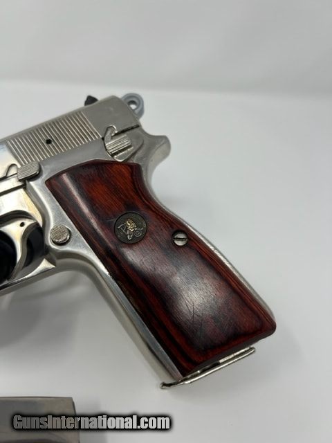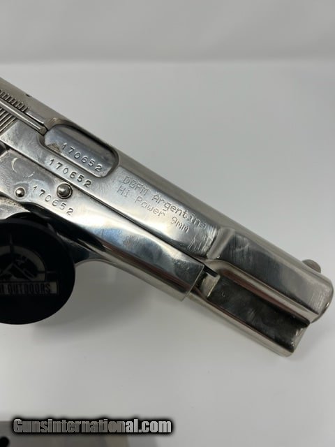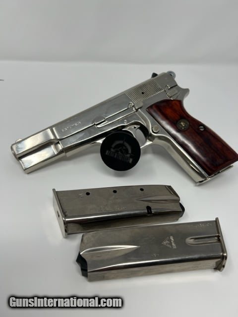 Description: Guns Listing ID: 677670 Used Fn browning DGFM Hi power made in Argentina 9mm, chromed, Pachmayr wood grips, 3 magazines. 2 13rnd and 1 15rnd. SOLD Manufacturer: FN Model: BROWNING "HI POWER Caliber Info: 9MM Condition: Used - Non-Certified Barrels: 4.7 BARREL Finish: CHROME |