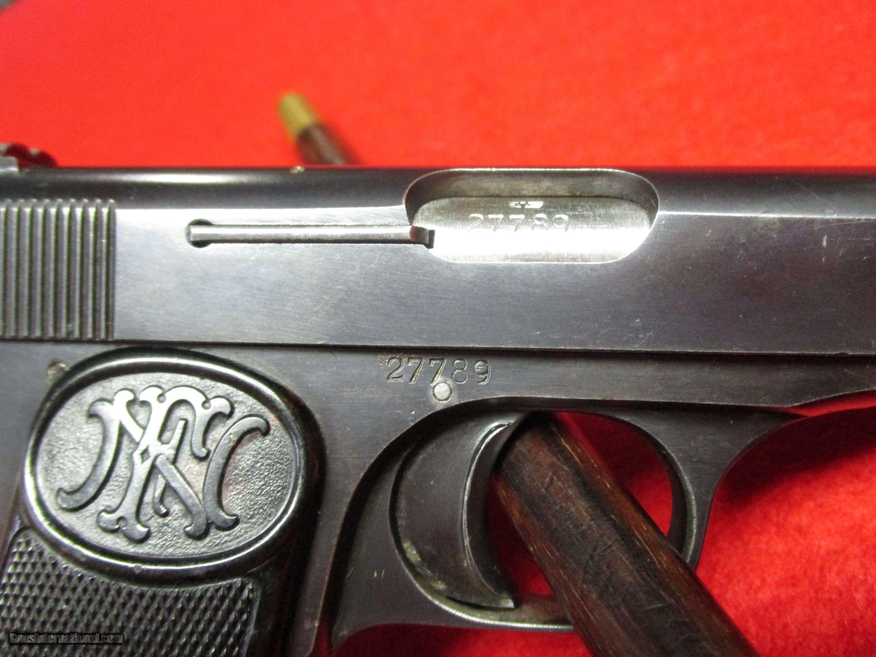 Description: Here is an interesting find. A German-issued FN Model 1922 with holster. To the germans it was known as the Pistole 626 (b), with “b” standing for Belgisch or Belgian. The pistol is in excellent condition with a little holster wear being present. Strangely, the Waffenamt markings were not stamped correctly. Fortunately, serial number lists exist. According to research, the serial number places this pistol in the range of M1922s with the WaA103 stamp. This applies to serial numbers between 24,000 and 60,000. The WaA140 stamp is the most common one found and came afterward. The pistol comes with 2 mags and a German-issue holster. The holster was manufactured by HK (not Heckler & Koch), a company also well known for their knives (good quality and very expensive). There is a mag pouch for the second holster. As mentioned, the barrel exhibits holster wear on either side of the barrel. There is also bluing wear on the front of the grip which is very common among wartime pistols. The pistol is otherwise in excellent condition. The magazine holds 9 rounds which is a high number for a small pistol. The 1922 was based on the Model 1910, designed by none other than John Browning himself. They operate on the striker-fire method. Contrary to popular belief the H&K VP70 and Glock 17 were not the first striker-fired pistols. The 1910 and 1922 both make excellent conceal carry pistols because of their small size and were used in this capacity alongside such pistols as the Walther PP/PPK and Colt M1903. And like those pistols, the ’10 and ’22 were issued to officers in World War II. Unfortunately, there is no real way to know what this pistol has been through. If only it could speak. SOLD Curio/Relic: Yes Manufacturer: FN Herstal of Belgium Model: Model 1922/Pistole 626(b) Serial Number: 27789 Caliber Info: .32 ACP/7.65mm Browning Bore: Rifled Condition: Used - Curio and Relic Metal Condition: Excellent - Minor Wear Bore Condition: Excellent Barrels: 4.5 inches (114mm) Action: Blowback, Striker-Fired Finish: Blued Sights: Fixed Manufacture Date: 1941-44 Extras: German-issue holster, spare mag |