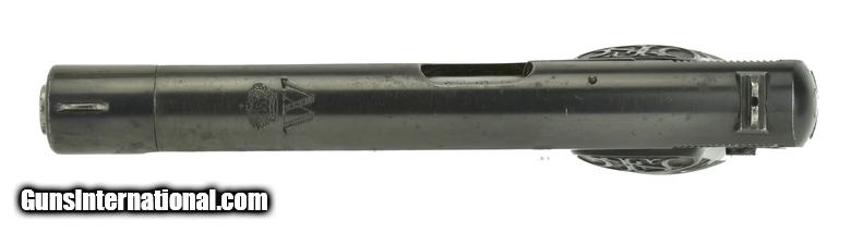 Description: FN Fabrique National 1922 Dutch 7.65mm caliber pistol. Desirable Dutch contract 1922 with Nazi markings. Top of slide is marked crown over W. Left side of frame is WaA 140 Waffenamt marked. Bore is excellent. Slide has some minor pin point pits with approximately 90% original blue. A fine Dutch contract 1922.