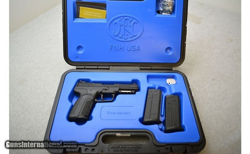Description: Very good to excellent condition overall. Pistol appears to be almost like new with minimal signs of use/wear. Comes with the factory case and papers, cable lock, and a total of 3 magazines. 5.7X28mm SOLD Chambers: Semiautomatic fed from detachable magazines. Metal Condition: What metal can be seen is in excellent condition. Wood Condition: Frame is in excellent condition. Bore Condition: Excellent. Like new shine and rifling. Barrels: Cold hammer-forged stainless steel. Triggers: Wide matte blued metal with grooved surface. Stock Dimensions: N/A Fore End: 5-Slot accessory rail. Butt Pad: Matte black polymer frame. Weight: 1lb 8oz Sights: Fixed front blade and adjustable rear. Chokes: N/A Item Location: Green Bay |