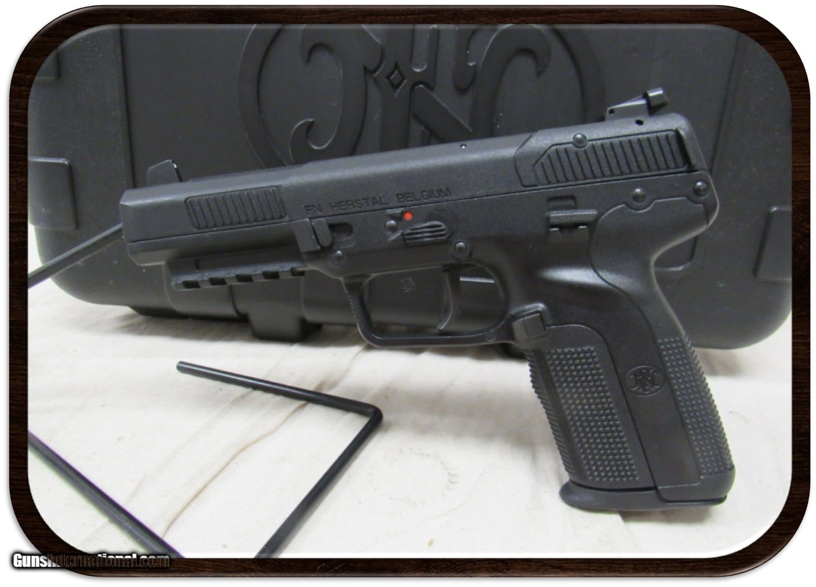 Description: Guns Listing ID: 914134 FN FIVE-SEVEN - 5.7X28MM - 20-ROUNDS - 4.8\" BARREL HAMMER-FIRED SINGLE-ACTION SEMI-AUTO PISTOL INCLUDES FN HARDCASE W/ OWNER‚‚S MANUAL + 2 MAGAZINES The original FN Five-seveN, often imitated but hardly duplicated, has two decades of trusted service with allied armies, global law enforcement and civilians. With improved range and accuracy over common pistol cartridges, the NATO standardized 5.7x28mm developed by FN Herstal is fired from the chrome-lined cold hammer-forged barrel. Pinpoint accuracy and minimal felt recoil is standard issue. Equipped with an internal hammer, the smooth trigger with a predictable break further enhances accuracy SOLD Manufacturer: FN Model: FIVE-SEVEN Caliber Info: 5.7X28MM Condition: Used - Non-Certified Barrels: 4.8 BARREL Finish: BLACK |