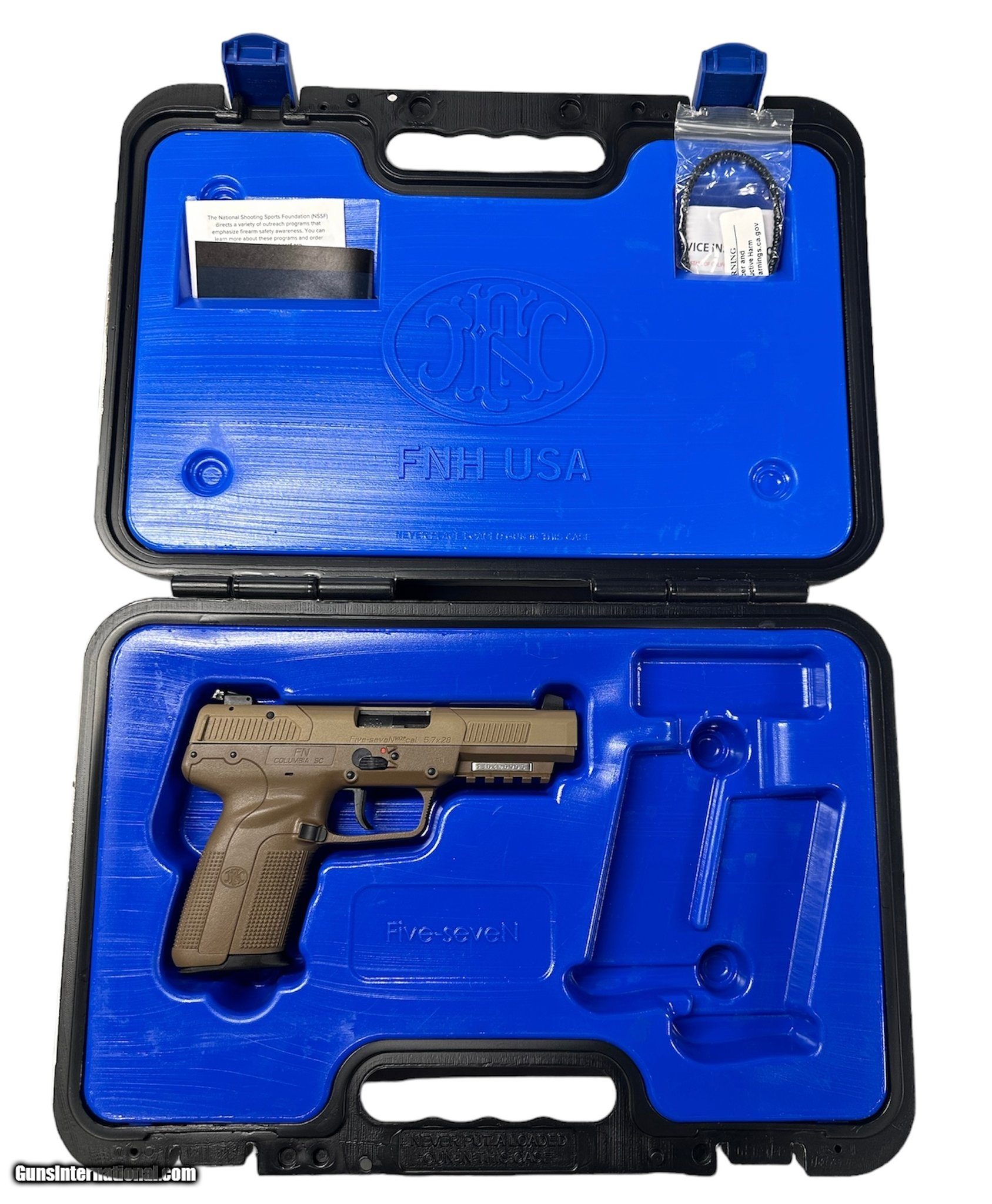 Description: Guns Listing ID: 1243962 Up for sale is a used FN Five-seveN. This firearm comes in it‚‚s original box with one magazine SOLD Manufacturer: FN Model: Five-Seven Caliber Info: 5.7X28MM Condition: Used - Non-Certified Barrels: 4.8 BARREL Finish: FLAT DARK EARTH |