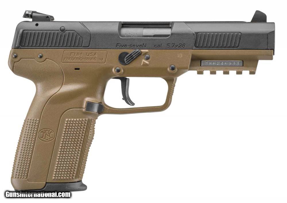 Description: Guns Listing ID: 97247 The FN Five-seveN FDE pistol was developed in the early 1990s and features a cold hammer-forged barrel that is chrome-lined for extended service life. Featuring FNs military-inspired FDE, the Five-seveN FDE is born for the battlefield. The polymer-framed FN Five-seveN FDE offers single-action operation, low felt recoil, 20-round magazine capacity, an ambidextrous, forward-mounted manual safety, and an accessory rail that accepts tactical lights and lasers. SOLD Manufacturer: FN Model: FIVE-SEVEN Caliber Info: 5.7X28MM Condition: new Barrels: 4.8 BARREL Action: SEMI AUTOMATIC Finish: fde Weight: 1.5 LBS. |