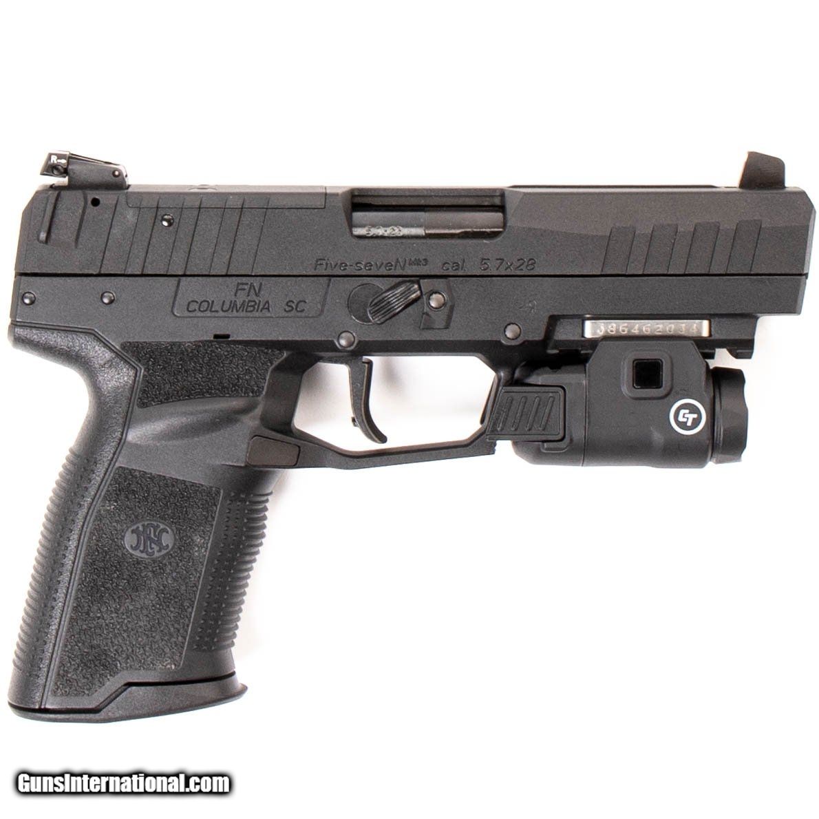 Description: Guns Listing ID: 506978 This FN Five-seveN is optic-ready (with plates) and features night sights, an ambidextrous safety, a magazine disconnect, and a Crimson Trace flashlight (needs batteries). Purchase includes the original soft case and two 10-round magazines. Get the best bang for your buck when you get a Certified Used Firearm . When you see the Certified Used stamp on any of our firearms, you can be confident that you‚‚re getting exactly what you want – a gun only in very good to excellent condition and held to the highest quality standard. All Certified Used Guns come with a ‚‚no questions asked‚‚ return policy . PLUS, ALL CERTIFIED USED GUNS SHIP FR SOLD Manufacturer: FN Model: FIVE-SEVEN Caliber Info: 5.7X28MM Condition: Used - Certified Barrels: 5.00 Action: SEMI AUTOMATIC Finish: black Weight: 1.4 |