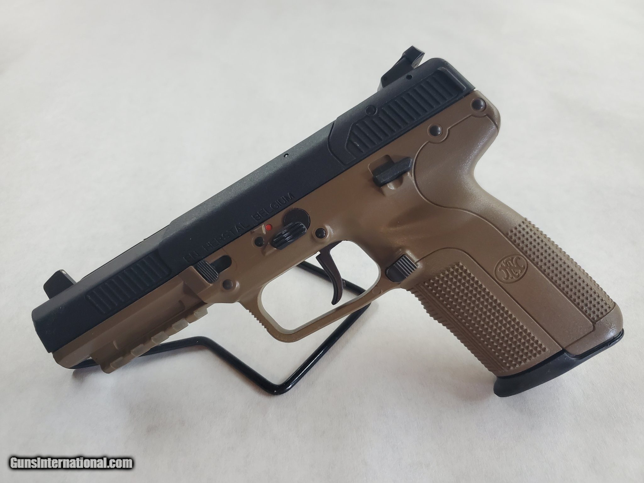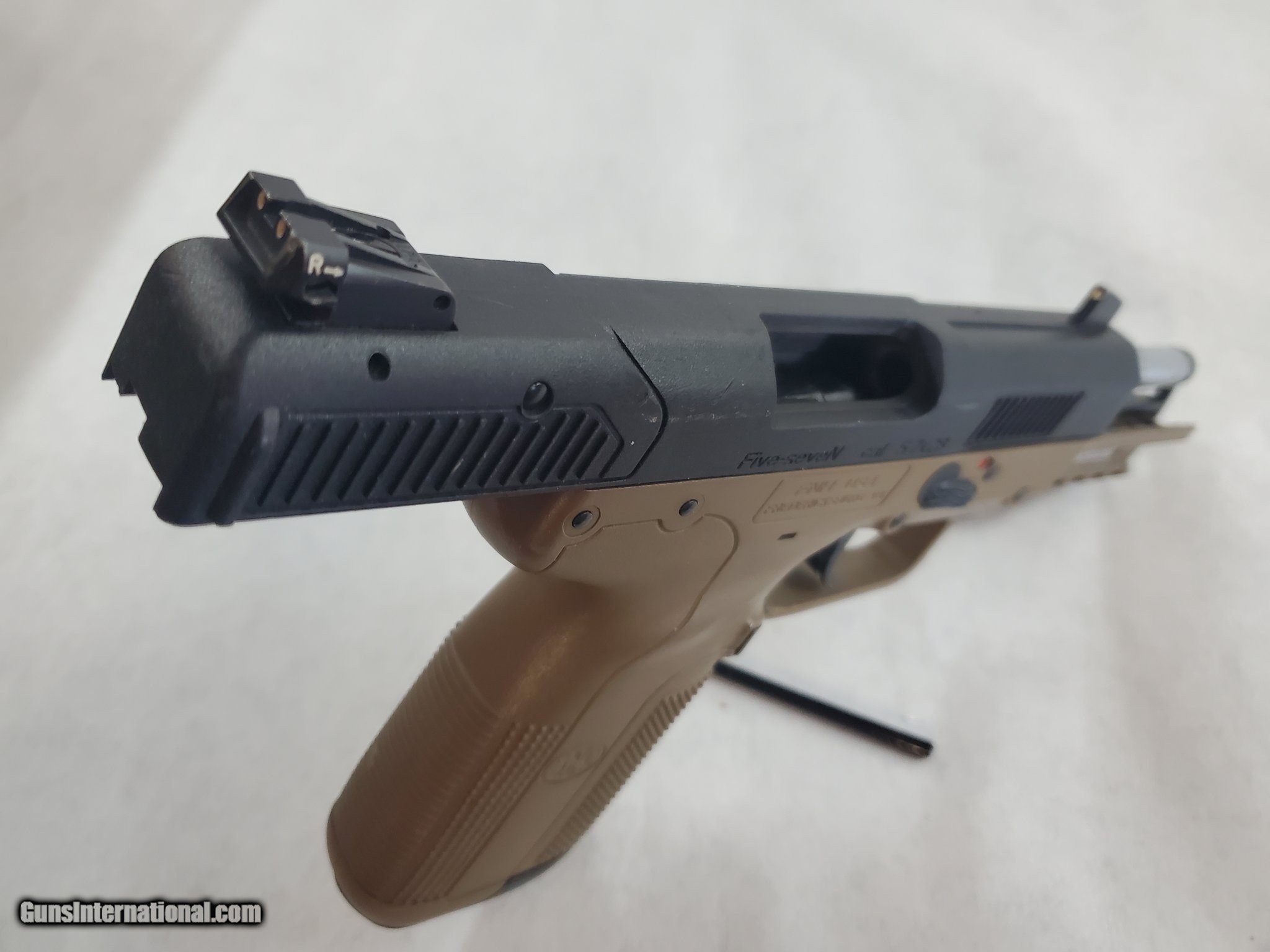 Description: Guns Listing ID: 531829 The FN Five-seveN is a semi-automatic pistol chambered in 5.7x28mm, developed by FN Herstal in Belgium. It‚s famous for its high-velocity cartridge, lightweight design, and exceptional magazine capacity, making it unlike most other handguns on the market. ?? Overview: Manufacturer: FN Herstal (Belgium) / FN America Model: FN Five-seveN (often stylized as “Five-seveN") Caliber: 5.7x28mm Action: Single-action only, internal hammer-fired Capacity: 20+1 rounds (standard), 10 or 30-round mags also available ?? Key Features: 5.7x28mm Cartridge: Originally developed to penetrate body armor when fired from the FN P90 PDW Extremely high velocity (~2,000+ fps), flat trajectory, and low recoil Very lightweight ammo, allowing for high capacity Lightweight Polymer Construction: Fully polymer frame and slide (with steel inserts) Weighs under 24 oz loaded, making it extremely light for its size Controls: Ambidextrous manual safety (frame-mounted) Reversible magazine release Internal hammer-fired system (not striker-fired) Sights & Optics: Fixed 3-dot sights or adjustable target sights depending on model Newer variants (Five-seveN MRD) are optics-ready for red dot mounting Ergonomics: Long but narrow grip to accommodate the double-stack 5.7mm magazine Unique feel due to cartridge shape and lightweight build ?? Specs (Standard Five-seveN MRD):** Barrel Length: 4.8 inches Overall Length: 8.2 inches Height: 5.7 inches Width: 1.4 inches Weight (unloaded): ~21 oz Trigger Pull: ~4.5–6.5 lbs (single-action) SOLD Manufacturer: FN Model: FIVE SEVEN Caliber Info: 5.7X28MM Condition: Used - Non-Certified Barrels: 5 BARREL Action: SEMI AUTOMATIC Finish: two tone |