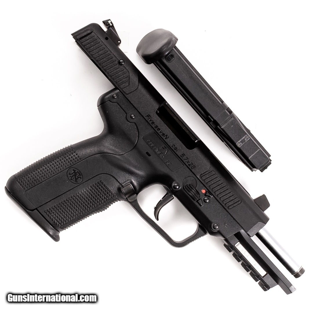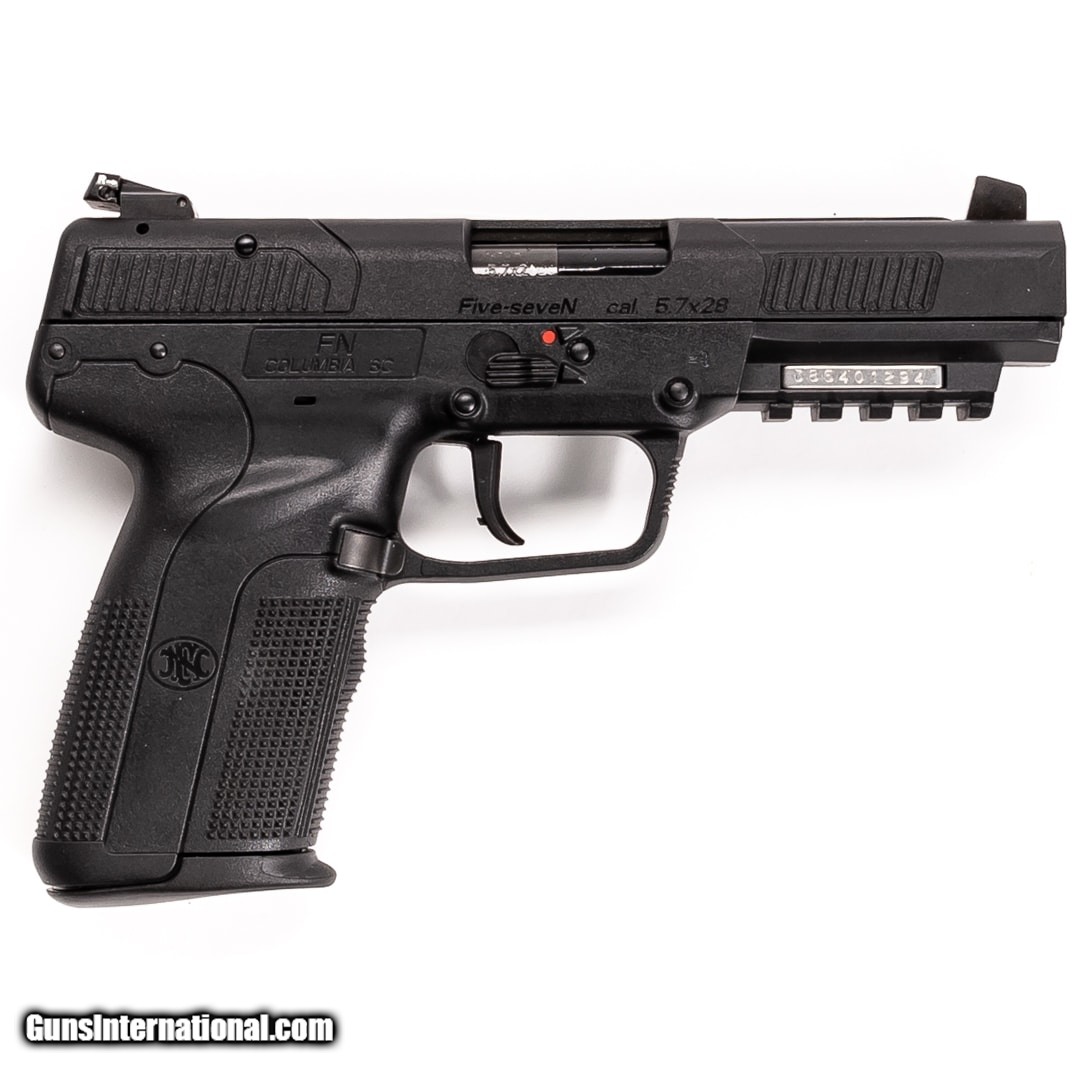 Description: Guns Listing ID: 307093 The FN Five-seveN is a high-performance handgun that revolutionizes self-defense sidearms. Chambered in 5.7X28mm, this handgun boasts blistering velocity, tac driving accuracy, and surprisingly mild recoil. The sights are easy to pick up and the standard magazine capacity is 20 rounds, giving you the tactical edge in a dire situation. 2 X 20 round magazines, the original box, and a gun lock are included. SOLD Manufacturer: FN Model: FIVE-SEVEN Caliber Info: 5.7X28MM Condition: Used - Certified Barrels: 4.8 BARREL Finish: BLACK |