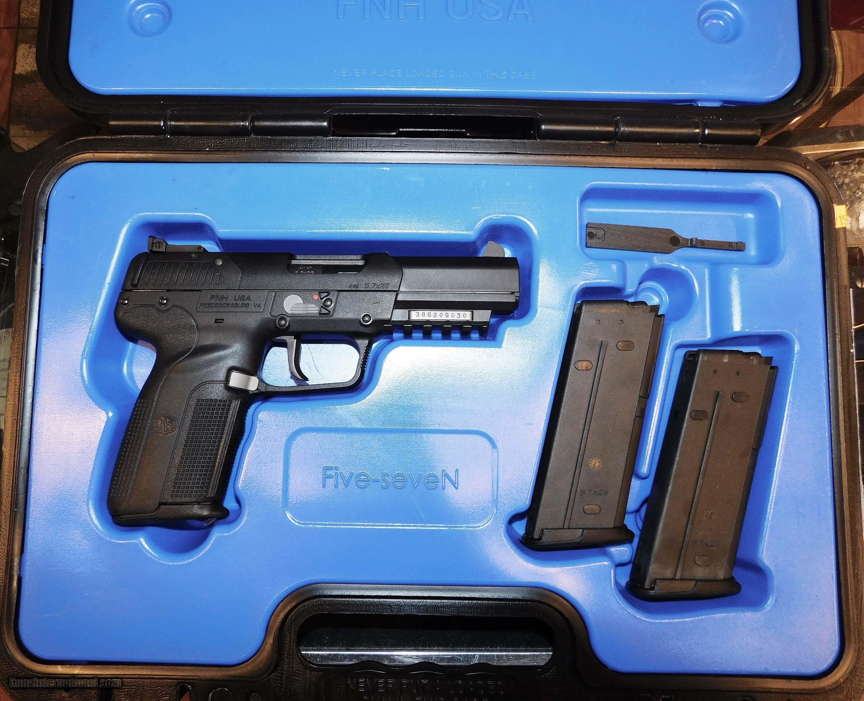 Description: FN FIVE SEVEN IN 5.7X28 CAL., WITH 5" BARREL. COLOR BLACK. CONDITION 98% LIKE NEW UNFIRED. SERIAL NUMBER 386209030. FN MODEL FIVE SEVEN IN 5.7X28 CAL., COMES WITH THREE FACTORY HI-CAP MAGAZINES, HARD CASE AND PAPERS, NOT FOR SALE IN MASS., 98% LIKE NEW UNFIRED OVERALL CONDITION, OUR STOCK # D3128 SOLD |