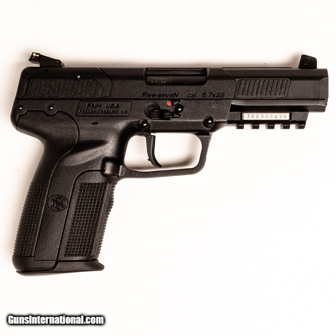 Description: Guns Listing ID: 591004 Named for the size of the bullet it uses, this FN Five-seveN is a semi-auto handgun chambered in 5.7x28mm. It offers primarily polymer construction for durability, a concealed hammer for smooth unholstering, and a picatinny rail for easily adding accessories. Additionally, this pistol offers about one-third the recoil of a typical 9mm handgun. This handgun features three 20-round magazines and the orignal case with the manual. SOLD Manufacturer: FN Model: FIVE-SEVEN Caliber Info: 5.7X28MM Condition: Used - Certified Barrels: 4.8 BARREL Finish: BLACK |
