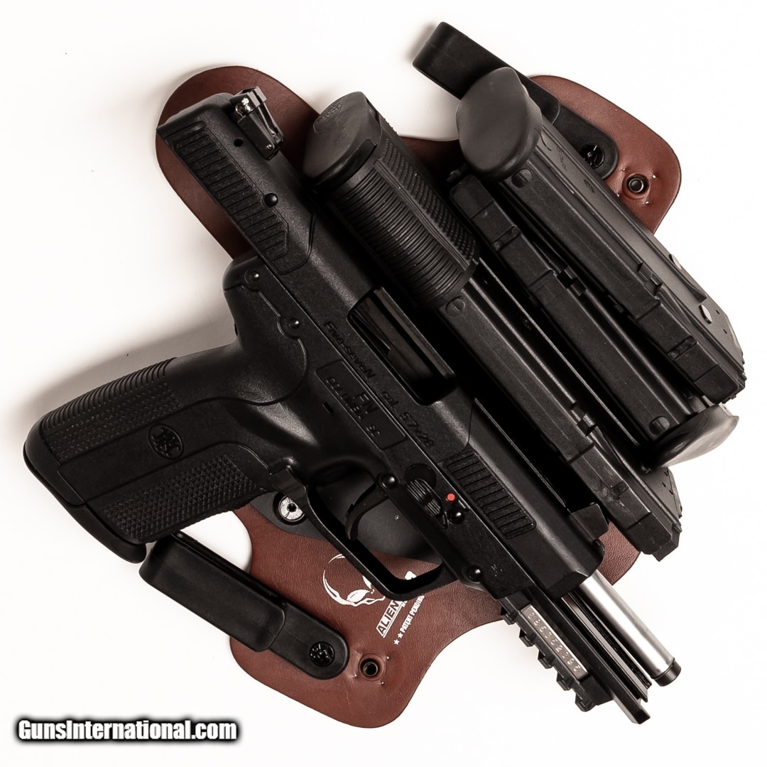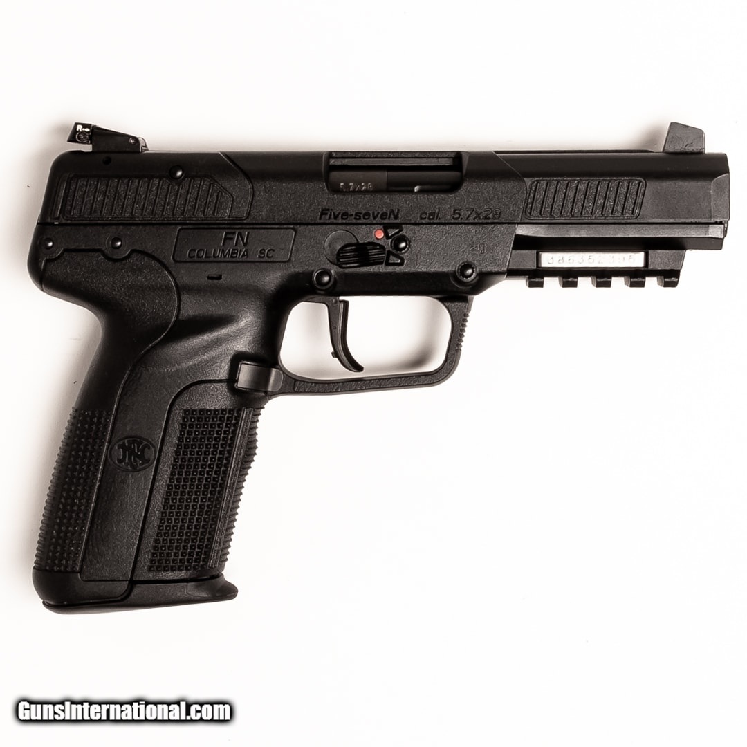 Description: Guns Listing ID: 562898 The FN Five-seveN is a high-performance handgun that revolutionizes self-defense sidearms. Chambered in 5.7X28mm, this handgun boasts blistering velocity, tac driving accuracy, and surprisingly mild recoil. The sights are easy to pick up and the standard magazine capacity is 20 rounds, giving you the tactical edge in a dire situation. 1-30 round magazine, 3-20 round magazines, the original case, manual, and an Alien Gear IWB right hand holster are included. SOLD Manufacturer: FN Model: FIVE-SEVEN Caliber Info: 5.7X28MM Condition: Used - Certified Barrels: 4.8 BARREL Finish: BLACK |
