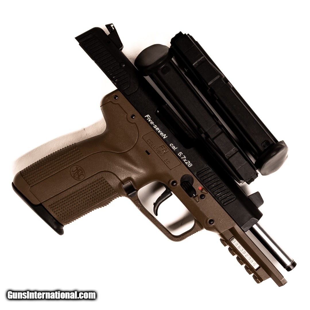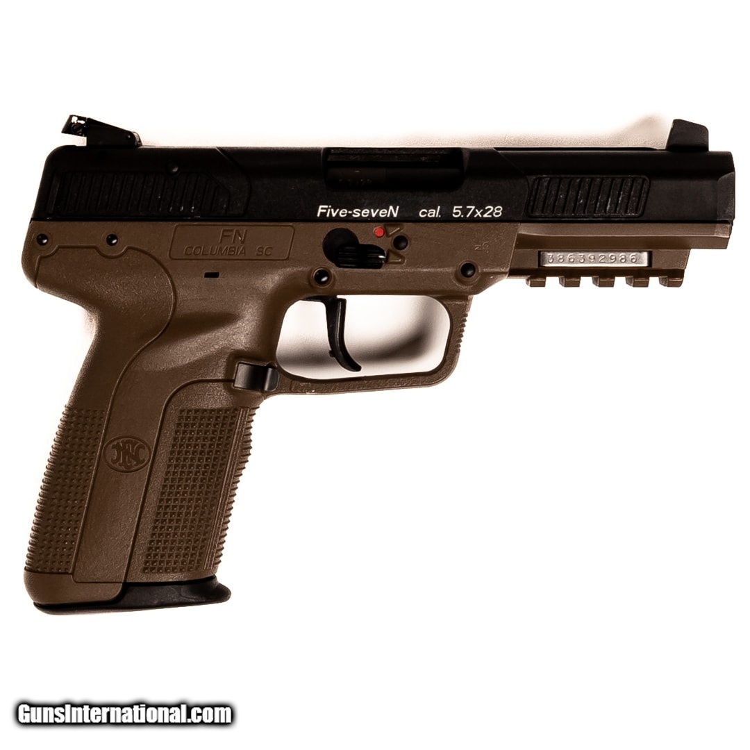 Description: Guns Listing ID: 696083 The FNH Five-seveN is a high-performance handgun that revolutionizes self-defense sidearms. Chambered in 5.7X28mm, this handgun boasts blistering velocity, tac driving accuracy, and surprisingly mild recoil. The sights are easy to pick up and the standard magazine capacity is 20 rounds, giving you the tactical edge in a dire situation. Listing includes (3) 20 round magazines, the original case, and user-manual. Get the best bang for your buck when you get a Certified Used Firearm . When you see the Certified Used stamp on any of our firearms, you can be confident that you’re getting exactly what you want – a gun only in very good to excellent condition and held to the highest quality standard. All Certified Used Guns come with a ‘no questions asked’ return policy . PLUS, ALL CERTIFIED USED GUNS SHIP FREE! SOLD Manufacturer: FN Model: FIVE-SEVEN Caliber Info: 5.7X28MM Condition: Used - Certified Barrels: 4.8 barrel Finish: FDE/BLACK |