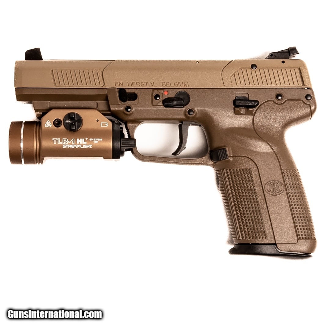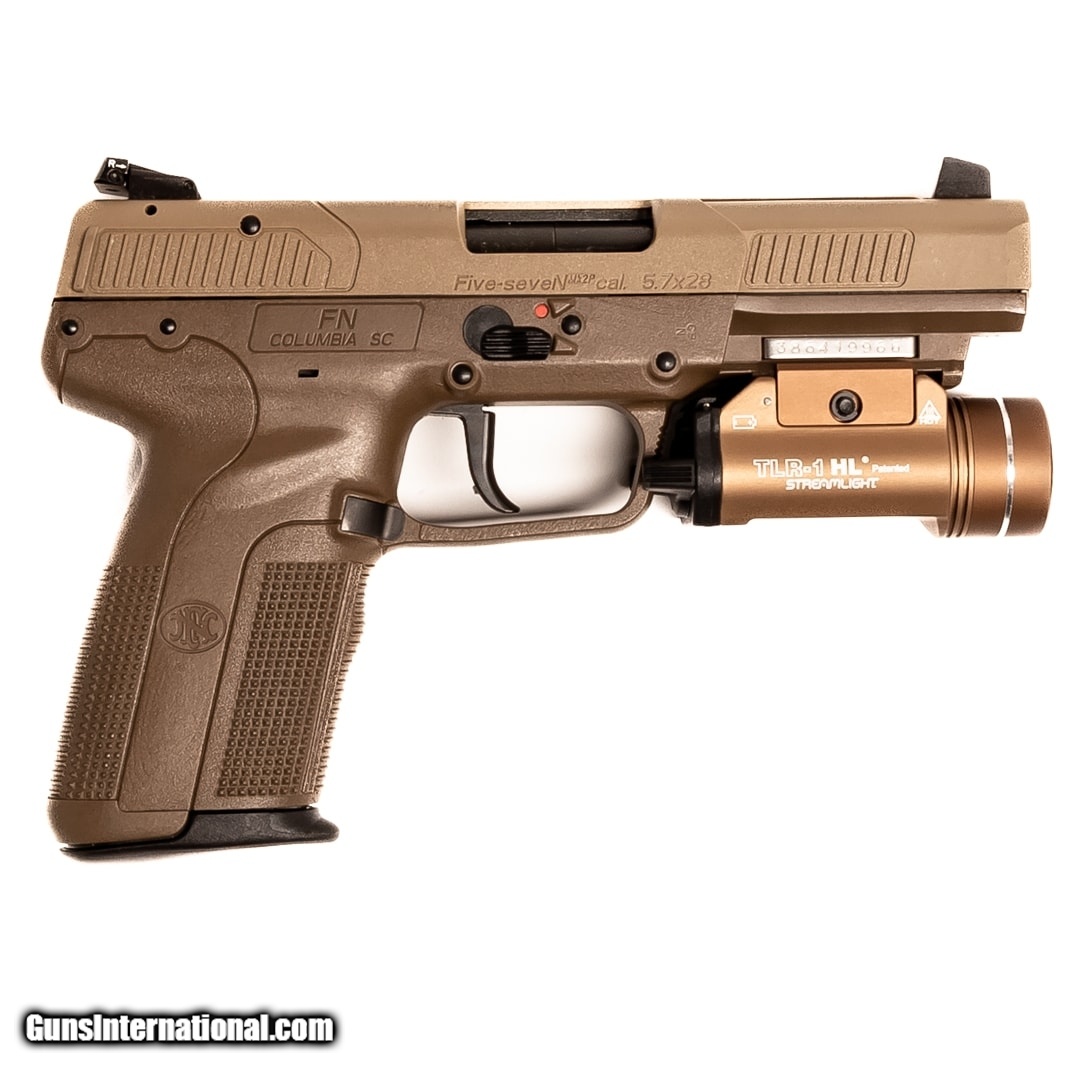 Description: Guns Listing ID: 766209 The FN Five-seveN is a high-performance handgun that revolutionizes self-defense sidearms. Chambered in 5.7X28mm, this handgun boasts blistering velocity, tac driving accuracy, and surprisingly mild recoil. The sights are easy to pick up and the standard magazine capacity is 20 rounds, giving you the tactical edge in a dire situation. 1-20 round magazine, the original case, manual, and a Streamlight 69266 TLR-1 HL are included. Get the best bang for your buck when you get a Certified Used Firearm . When you see the Certified Used stamp on any of our firearms, you can be confident that you’re getting exactly what you want – a gun only in very good to excellent condition and held to the highest quality standard. All Certified Used Guns come with a ‘no questions asked’ return policy . PLUS, ALL CERTIFIED USED GUNS SHIP FREE! SOLD Manufacturer: FN Model: Five-seveN Caliber Info: 5.7X28MM Condition: Used - Certified Barrels: not specified Finish: FDE |