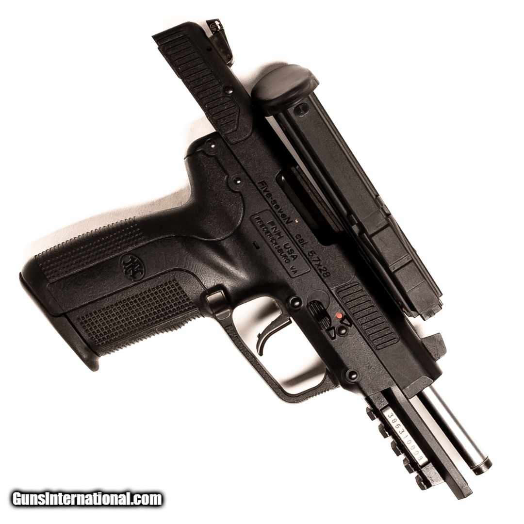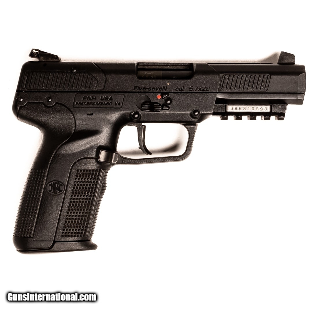 Description: Guns Listing ID: 760854 The FNH Five-seveN is a semi-auto handgun named for the caliber in which it is chambered — 5.7x28mm. Suitable for concealed carry and home defense, the delayed blowback action aids in reduced recoil. It offers predominately polymer construction, as well as a concealed hammer and special safety to prevent firing without a magazine. An integral rail makes for easy mounting of accessories. This Five-SeveN includes the original case, manual, and two 20-round magazines. Get the best bang for your buck when you get a Certified Used Firearm . When you see the Certified Used stamp on any of our firearms, you can be confident that you’re getting exactly what you want – a gun only in very good to excellent condition and held to the highest quality standard. All Certified Used Guns come with a ‘no questions asked’ return policy . PLUS, ALL CERTIFIED USED GUNS SHIP FREE! SOLD Manufacturer: FN America Model: Five-seveN Caliber Info: 5.7X28MM Condition: Used - Certified Barrels: 4.8 BARREL Finish: BLACK |