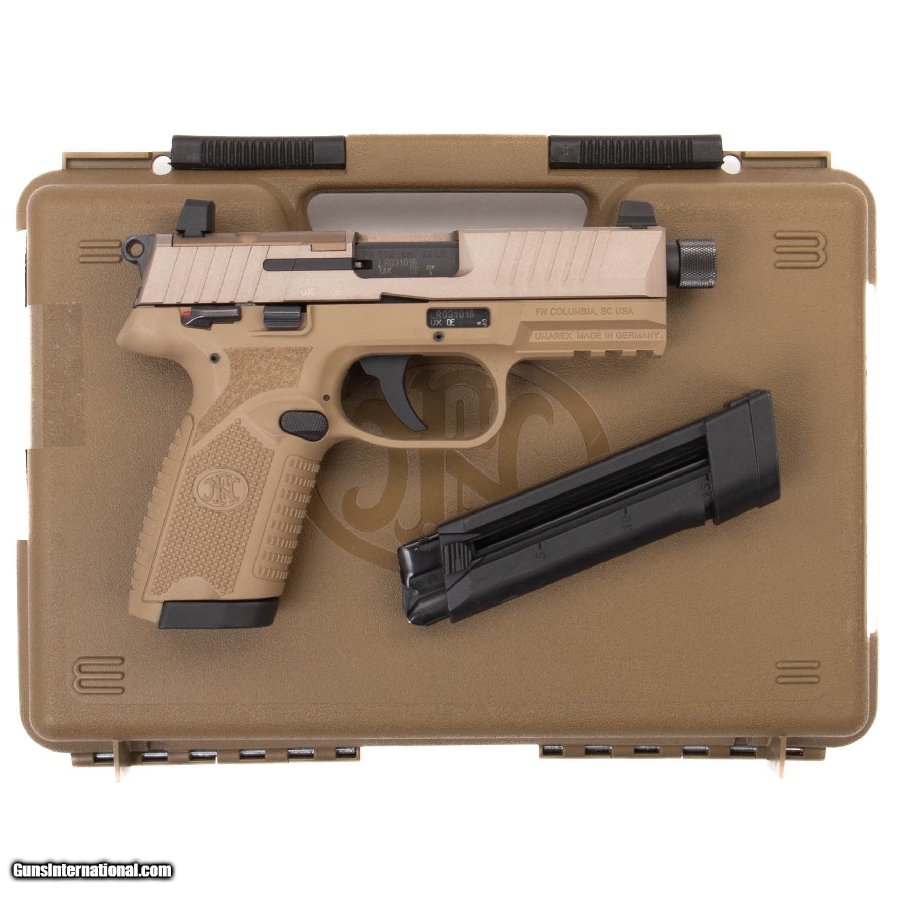 Description: Guns Listing ID: 483537 This FN 502 features a threaded barrel. It includes the original case, one 10-round magazine, and one 15-round magazine. Get the best bang for your buck when you get a Certified Used Firearm . When you see the Certified Used stamp on any of our firearms, you can be confident that you‚‚re getting exactly what you want – a gun only in very good to excellent condition and held to the highest quality standard. All Certified Used Guns come with a ‚‚no questions asked‚‚ return policy . PLUS, ALL CERTIFIED USED GUNS SHIP FR SOLD Manufacturer: FN Model: FN 502 Caliber Info: .22 LR Condition: Used - Certified Barrels: 4.50 Action: SEMI AUTOMATIC Finish: fde Weight: 1.4 |