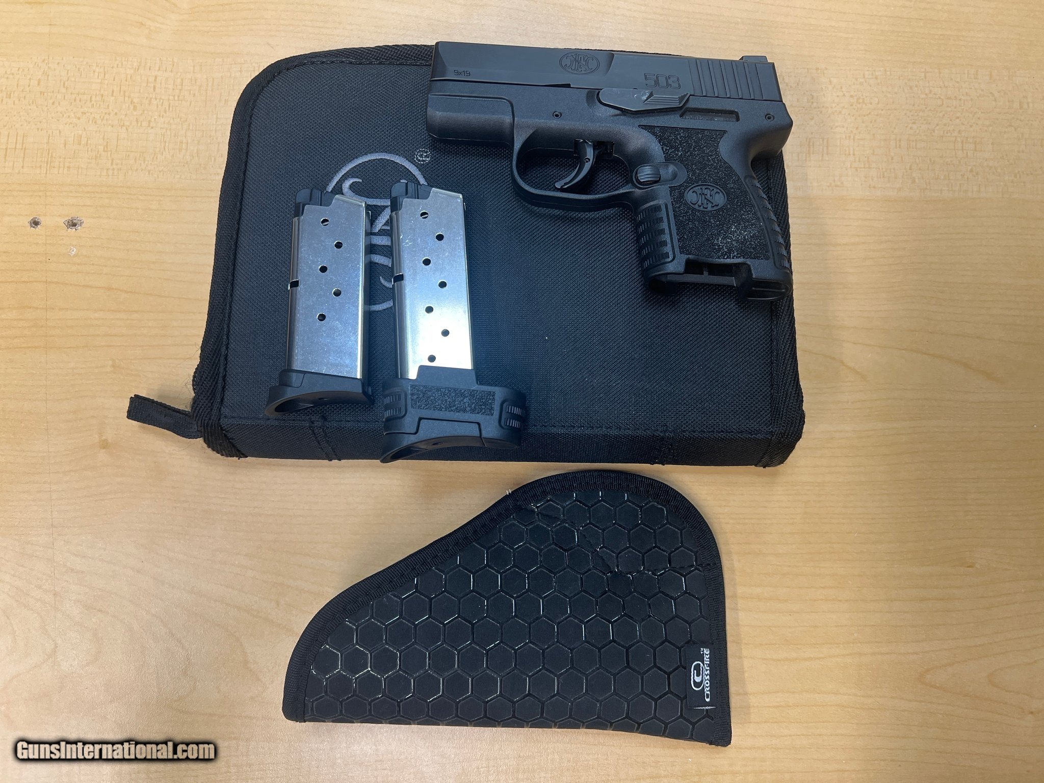 Description: Guns Listing ID: 460726 This compact carry gun is a pancake gun. It come with two single stack magazines, one 6rd and one 7rd. Barrel is 3in in length. Comes with soft case and a holster. SOLD Manufacturer: FN Model: FN 503 Caliber Info: 9MM LUGER (9X19 PARA) Condition: Used - Non-Certified Barrels: 3.1 BARREL Action: STRIKER Finish: BLACK Weight: 1.2 lbs. |