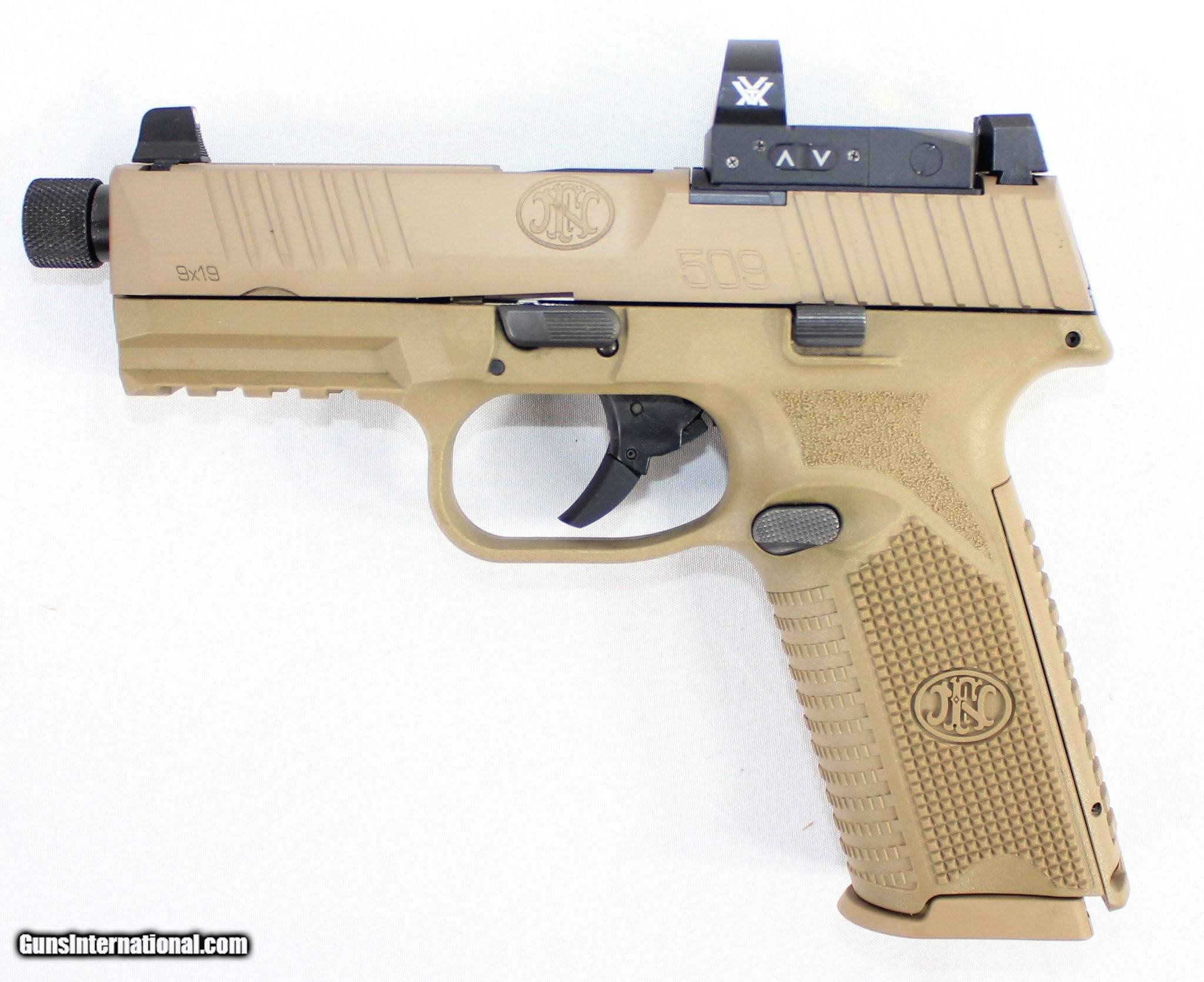 Description: Guns Listing ID: 565317 MAKE - FN MODEL - 509 TACTICAL FINISH - FDE BARREL - 4.5\" THREADED CALIBER - 9MM CAPACITY - 17 CONDITION - EXCELLENT COMES WITH BAG, BOX, 1-MAG, VORTEX VENOM 3MOA SOLD Manufacturer: FN Model: FN 509 TACTICAL 9MM THREADED 4.5" BARREL W/ BAG, BOX, 1-MAG, VORTEX VENOM Caliber Info: 9MM LUGER (9x19 PARA) Condition: Used - Non-Certified Barrels: 4.5" BARREL Action: SEMI AUTOMATIC Finish: fde |